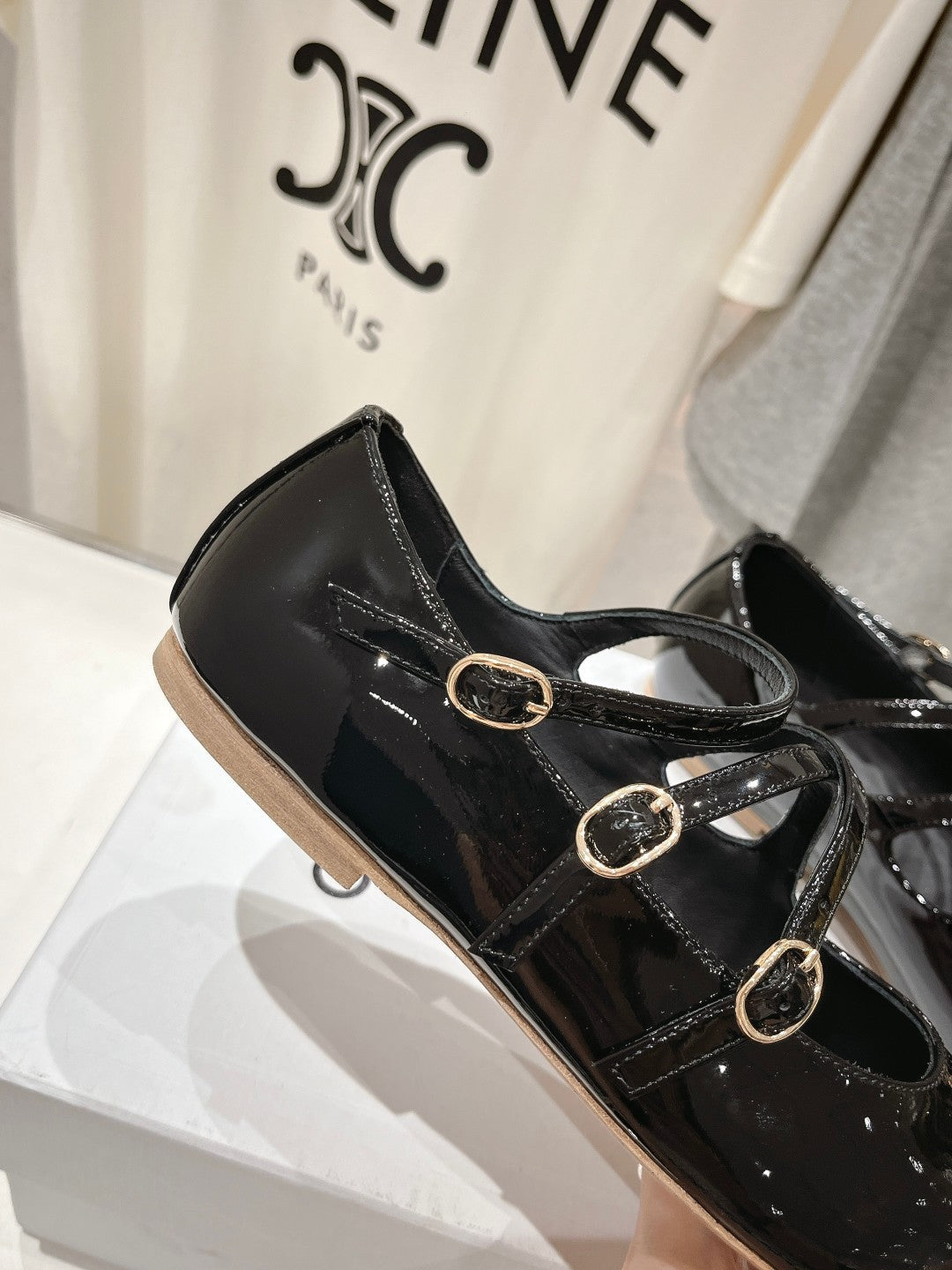 Celin Ballerina Triple Strap Black Patent Calfskin