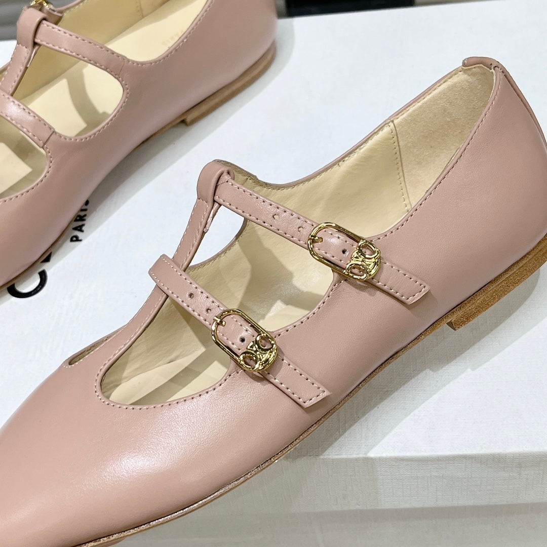 FLAT SANDALS WITH DOUBLE STRAP-DESIGN LEATHER ROSE PINK