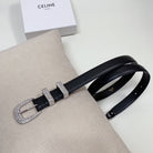 CL 25 MM MARCO BELT WITH STRASS IN BLACK CALFSKIN SILVER HARDWARE