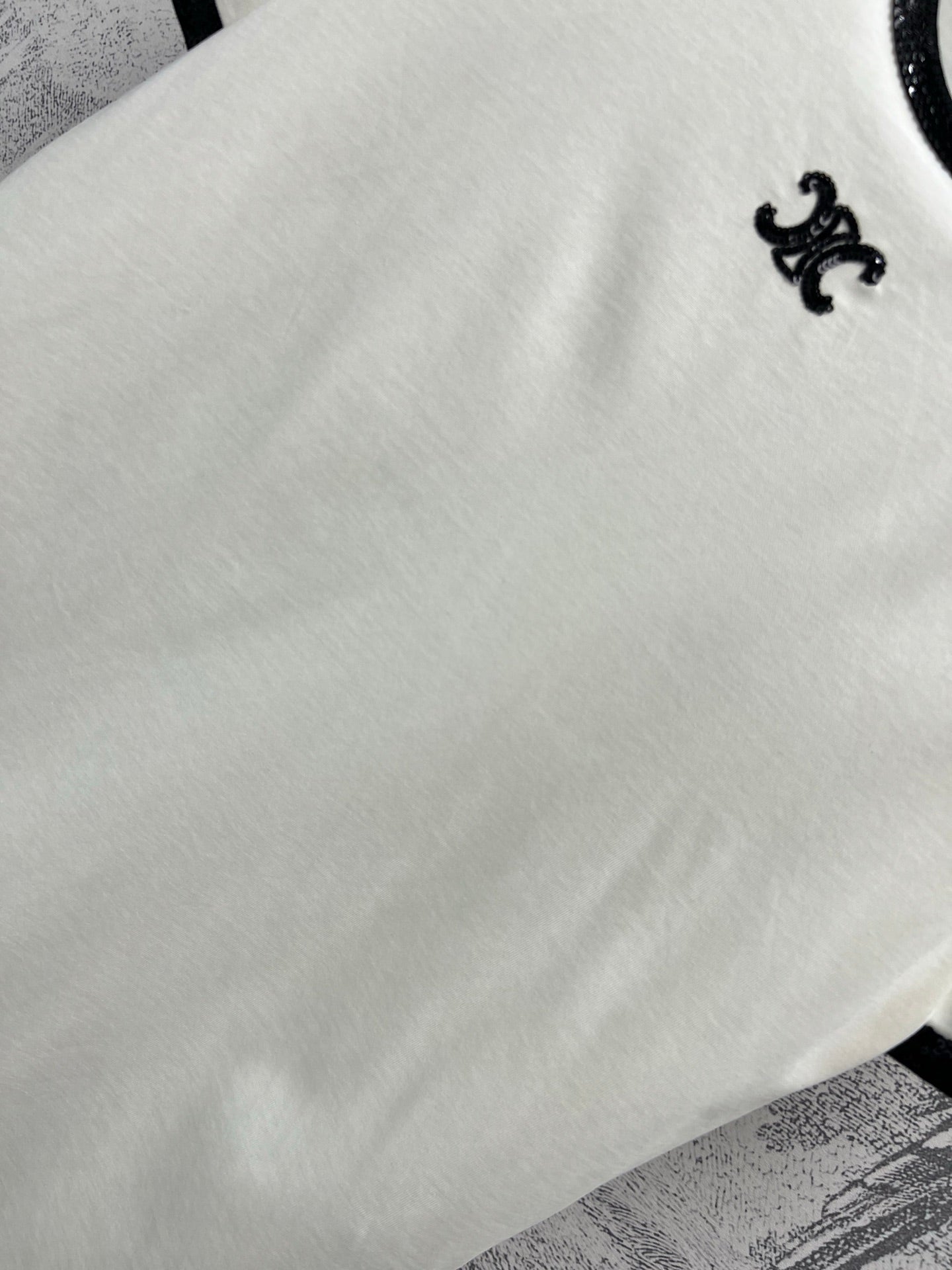 Celine 25 Embroidered Logo T-shirt White mix Black Cotton Polyester