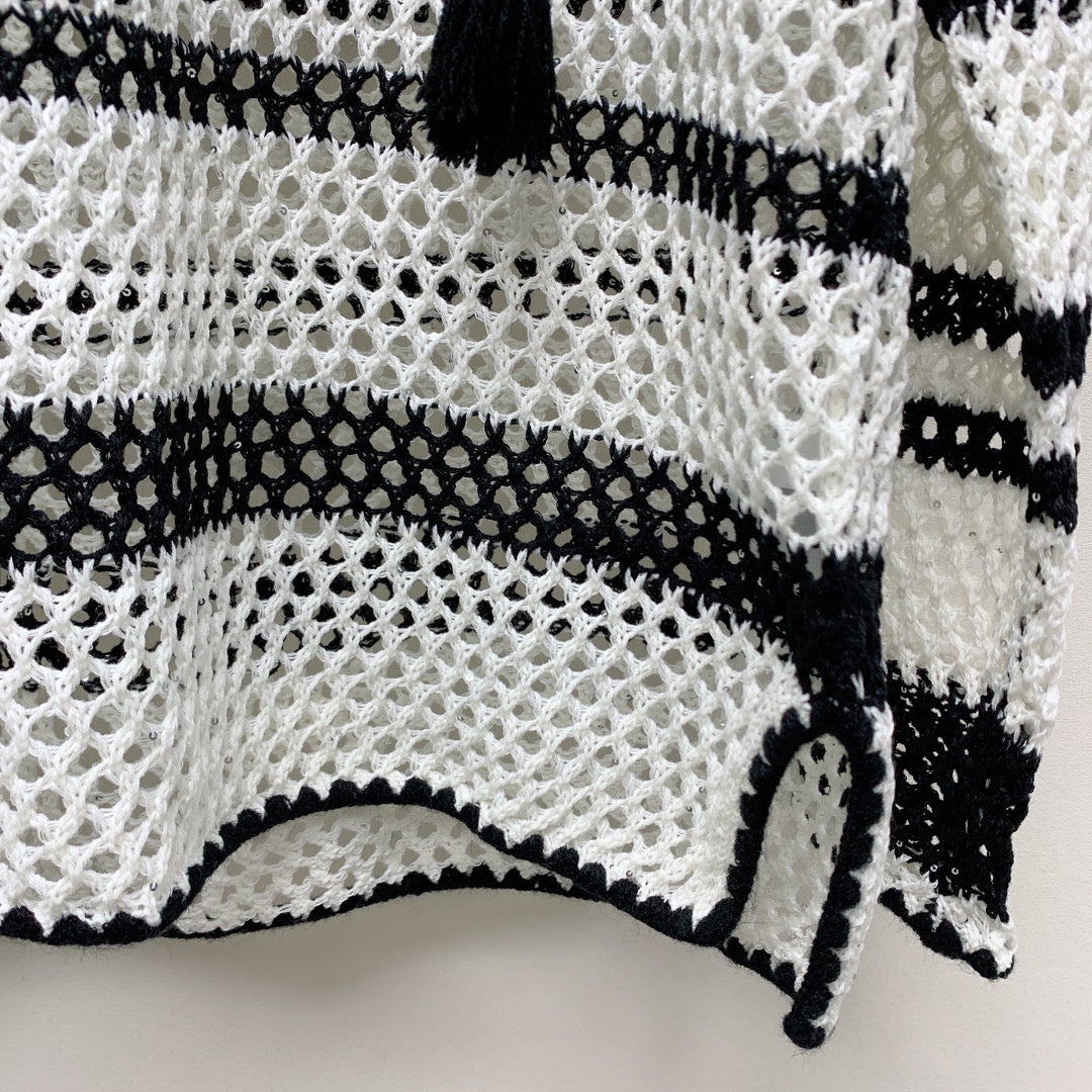 Celine 25 Hollow Crochet Cardigan Black White Wool Polyester 277568