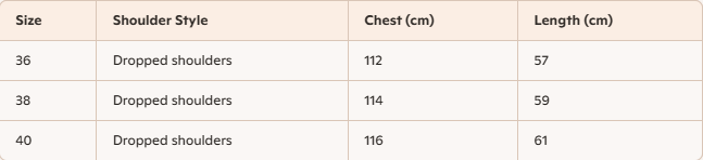 - For more information, please see the size guide below