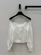 Celine 25 Lace One-shoulder Top White Cotton