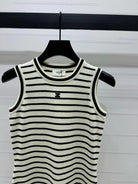 Triomphe Striped Mini Dress Black White Crocheted Cotton