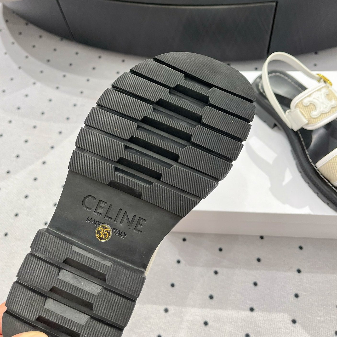 CELINE Buckle Triomphe Loafers White Leather 285957