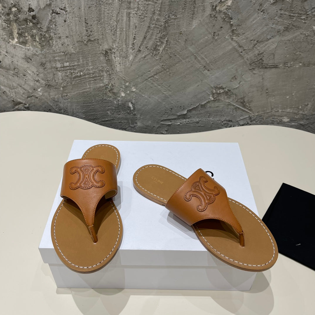 LYMPIA TRIOMPHE THONG IN CALFSKIN CARAMEL BROWN