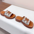 LEA TRIOMPHE PLATFORM SLIDES WOMEN VEGETABLE TANNED CALFSKIN BROWN/WHITE