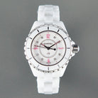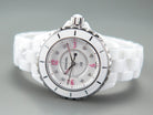 J12 Quartz White Ceramic Pink Diamond Numerals White Dial