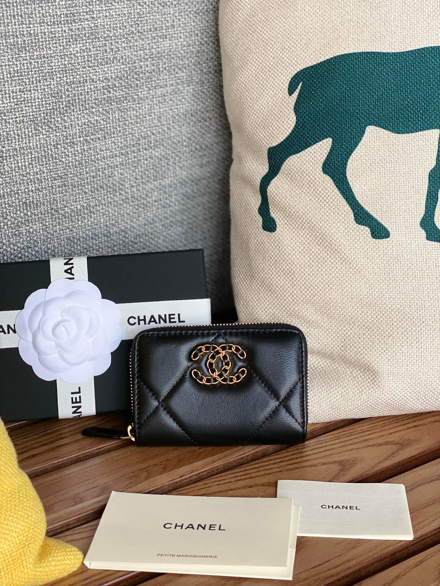 cc 19 zipped coin purse 11cm black lambskin gold hardware