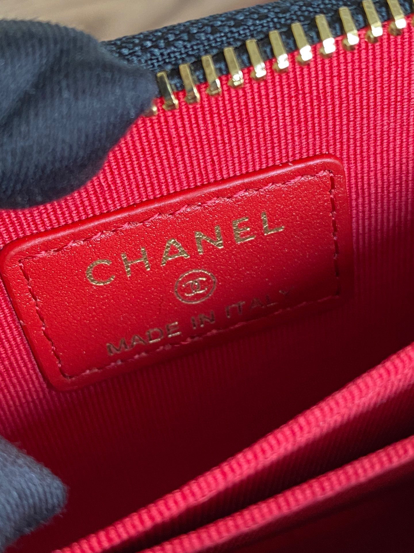 cc 19 zipped wallet 19.5cm black calfskin gold hardware