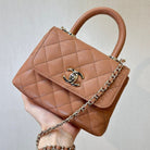 CC 24K Coco Handle Nano 14.5cm Begie Grained Calfskin Gold Hardware