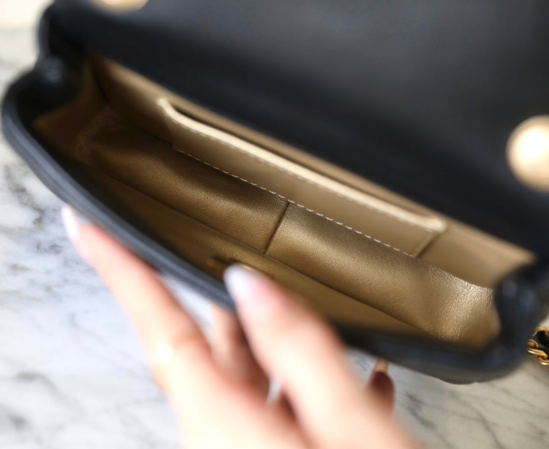 cc 24s mini flap bag 17cm black lambskin pearl ball