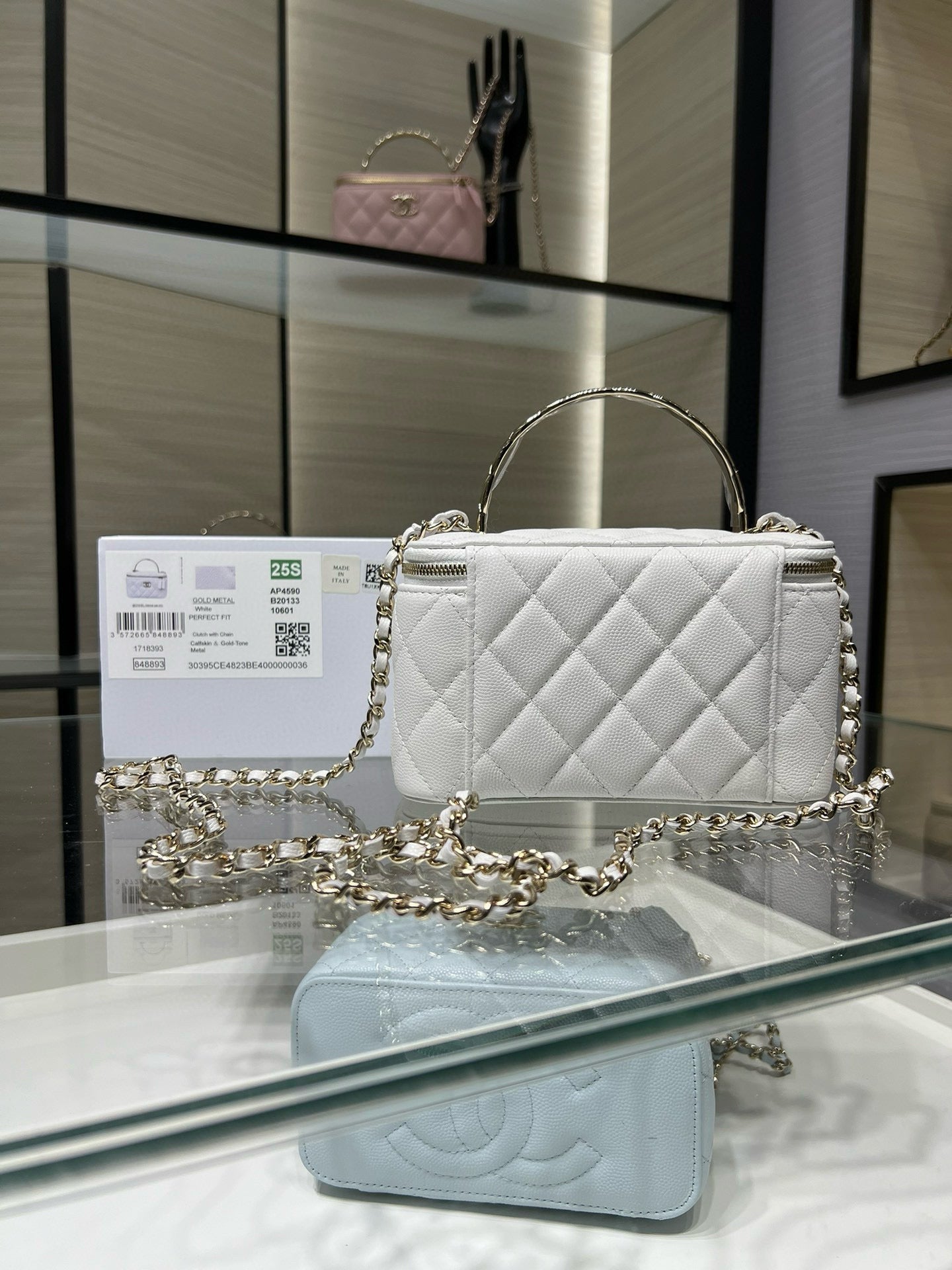 CC 25S Small Vanity 17cm White Grained Calfskin Light Gold Hardware