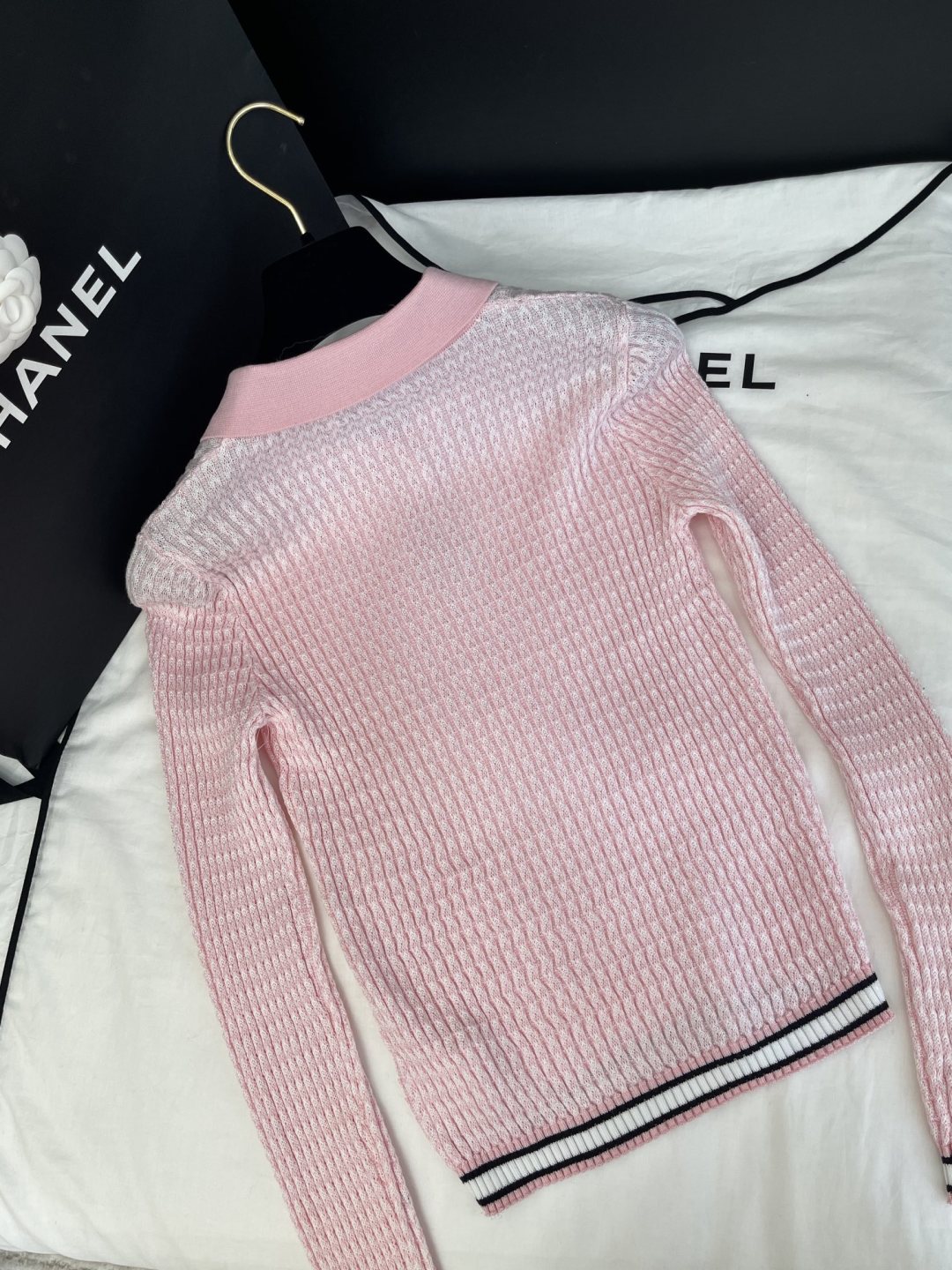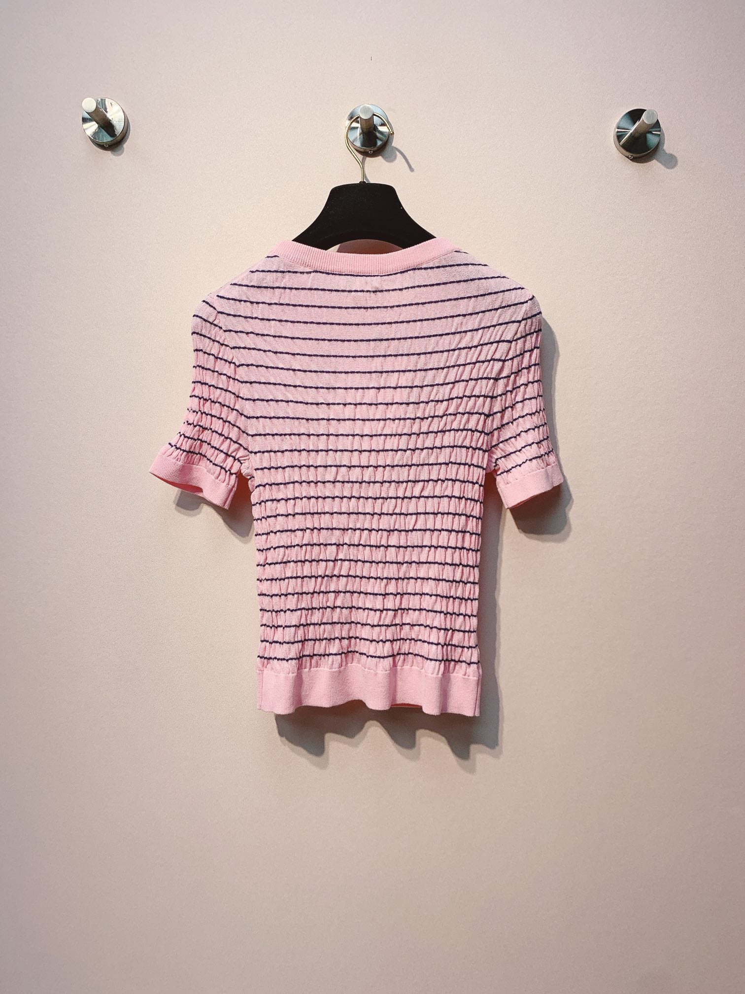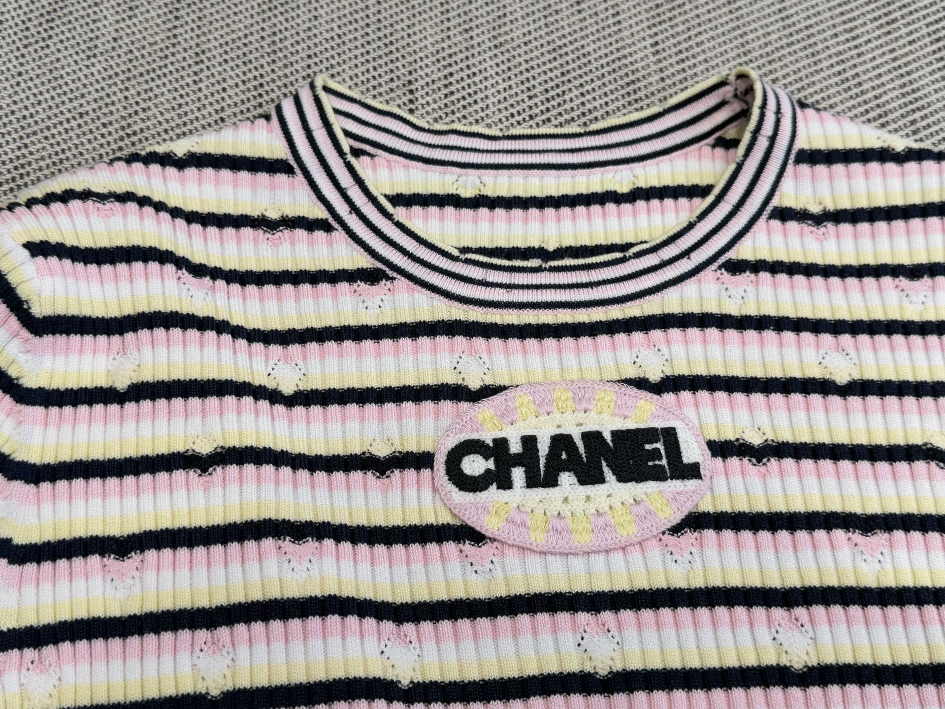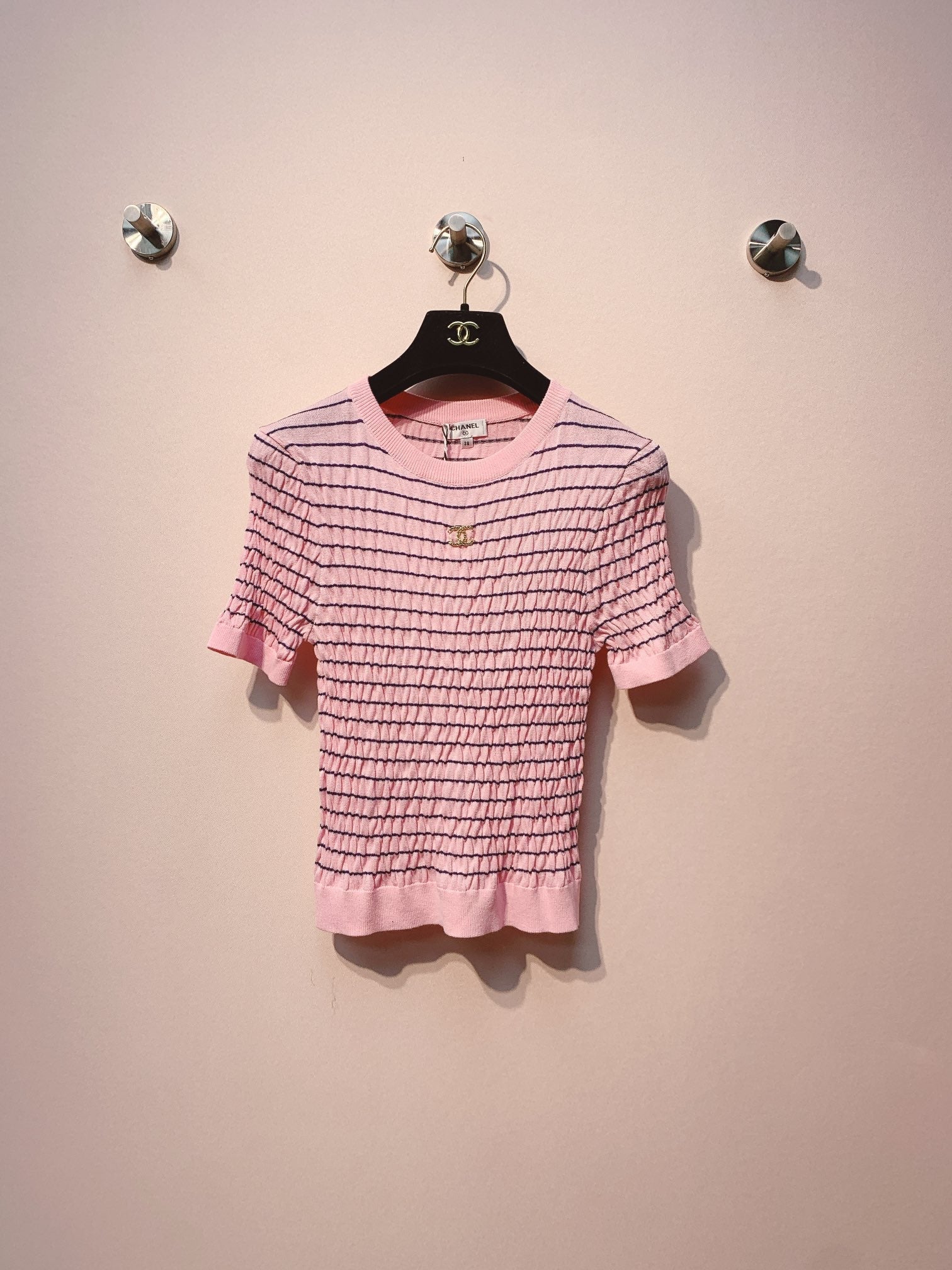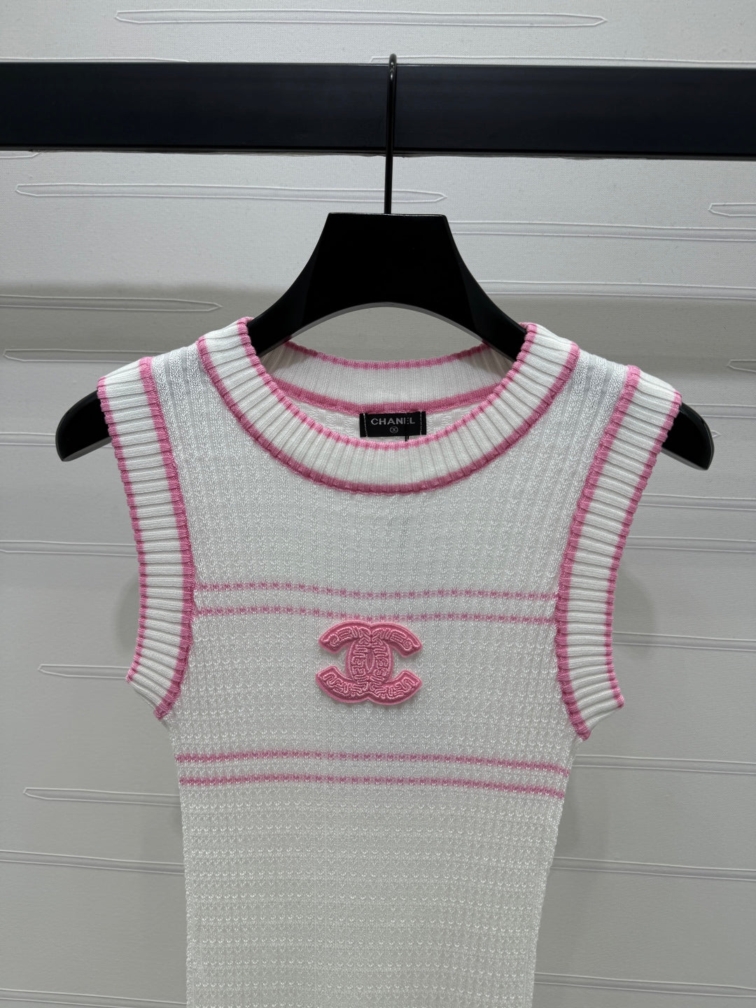 Chanel 25 Pink Black Striped Knit Tank Top