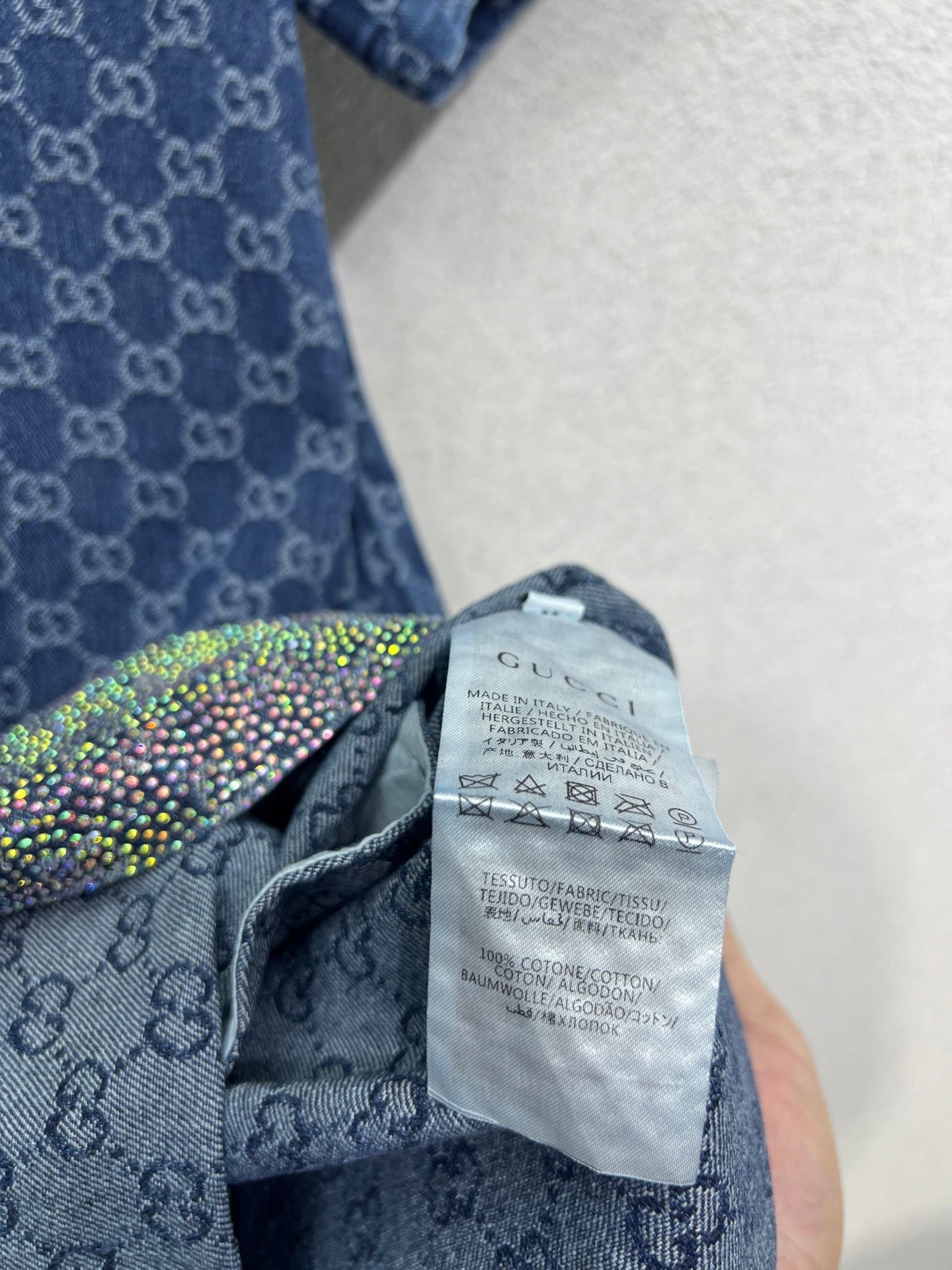 GG Blue Monogram Crystal Embellished Jean