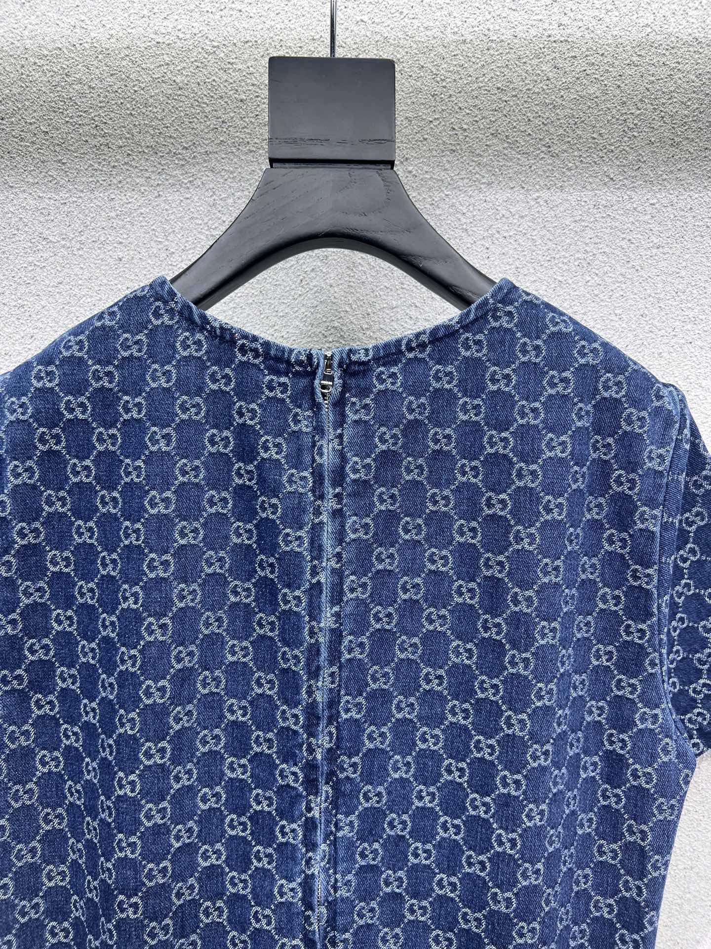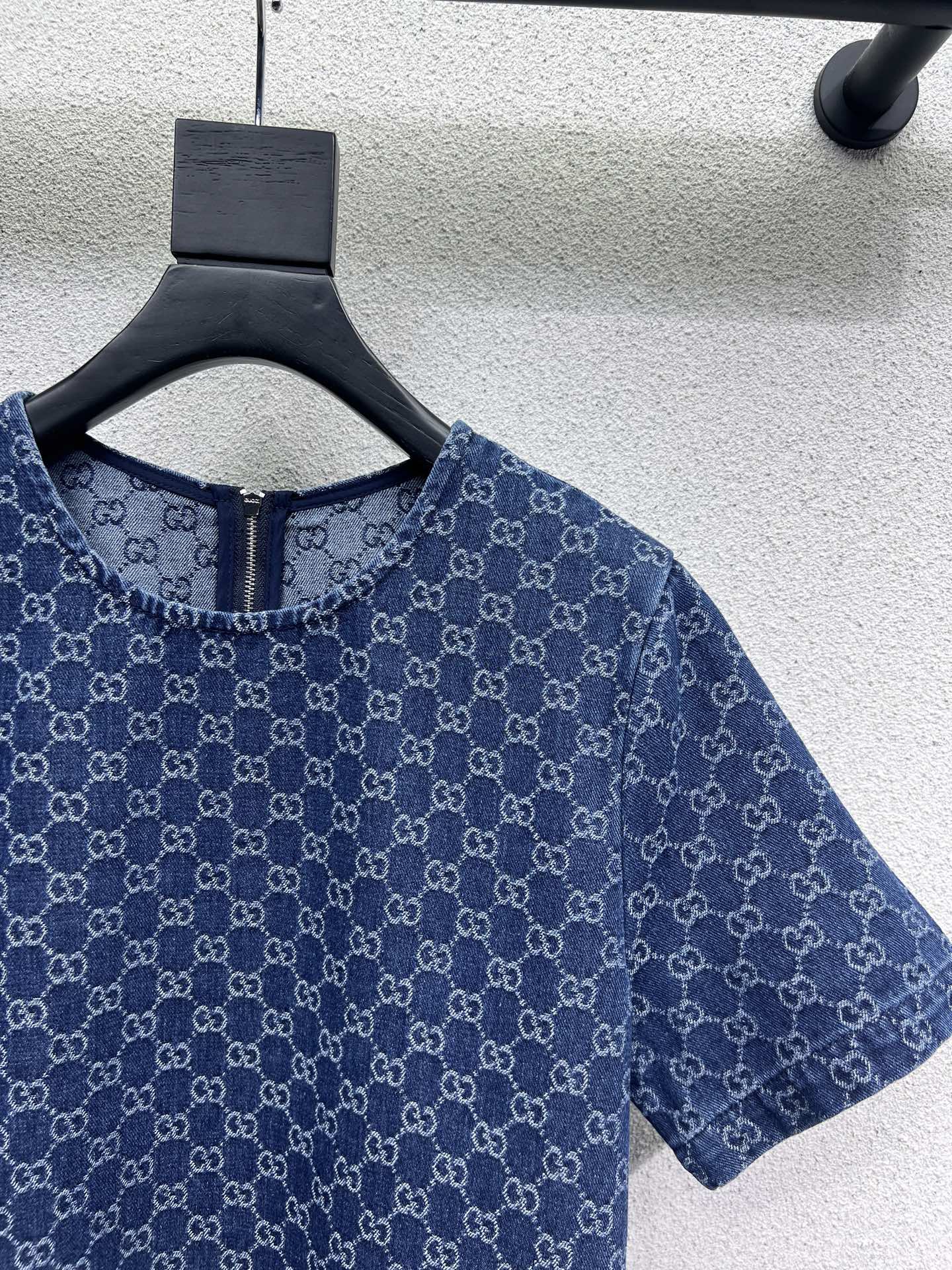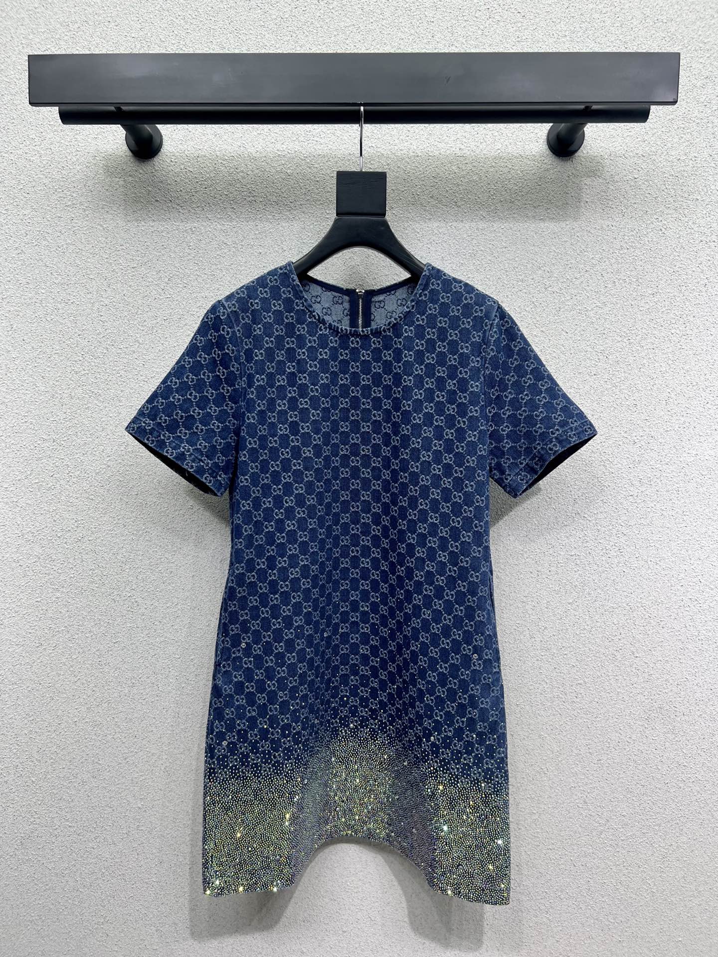 GG Blue Monogram Crystal Embellished Mini Dress