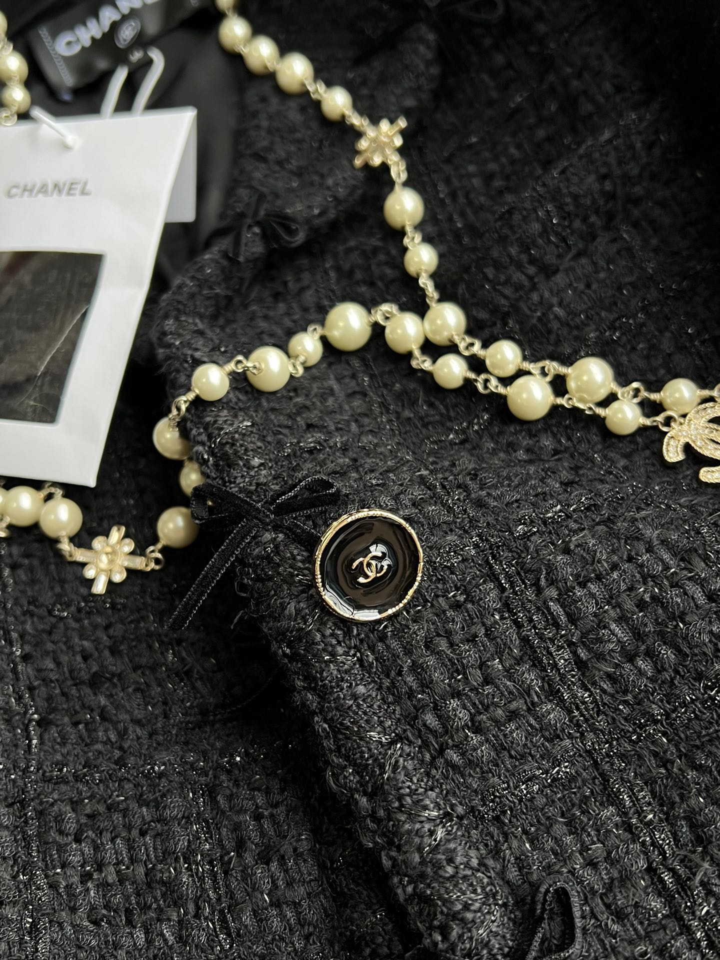 CC 25 Pearls Cardigan Black Cashmere