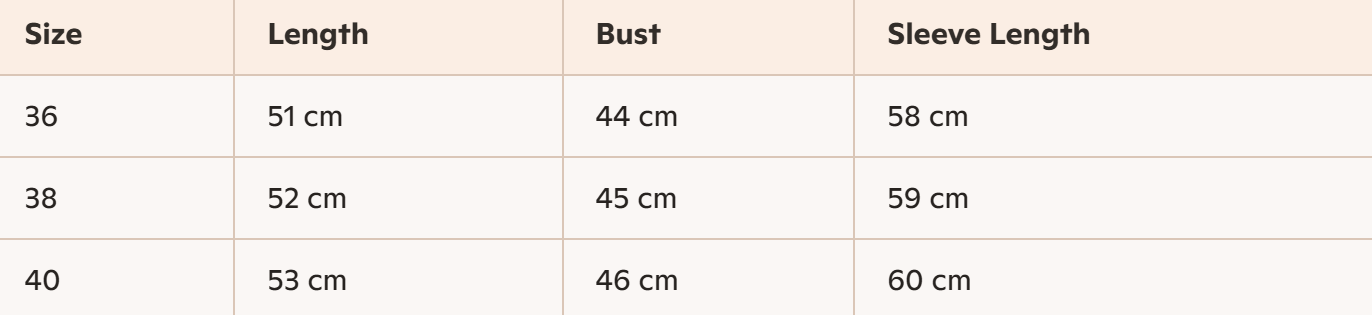 - Size : 36, 38, 40