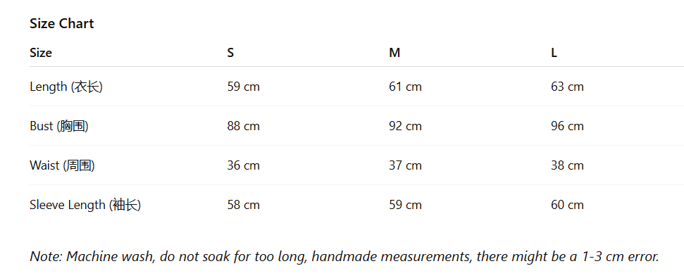 - Size : S, M, L