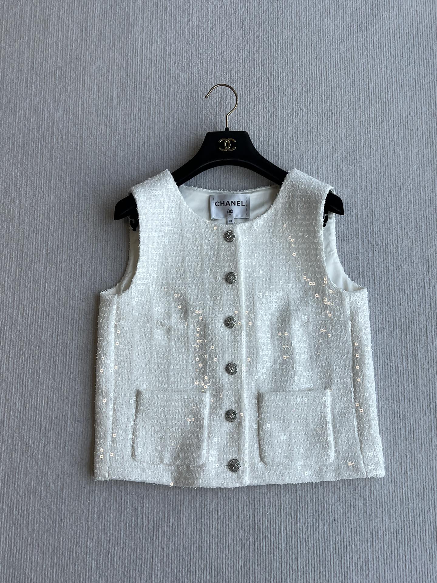 CC 25 Tweed Set Vest White Cotton Polyamide 251650
