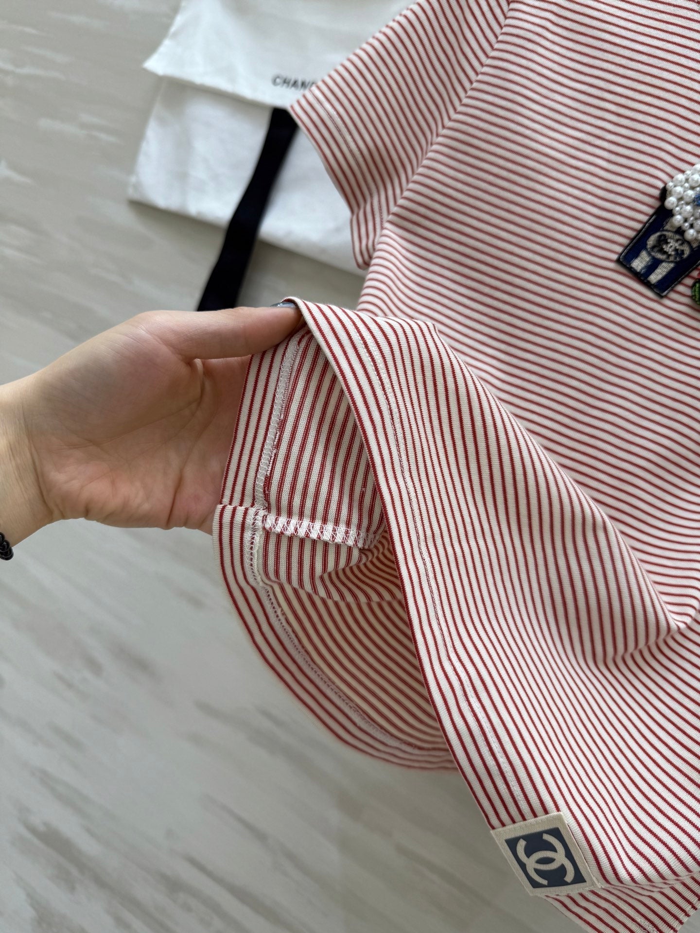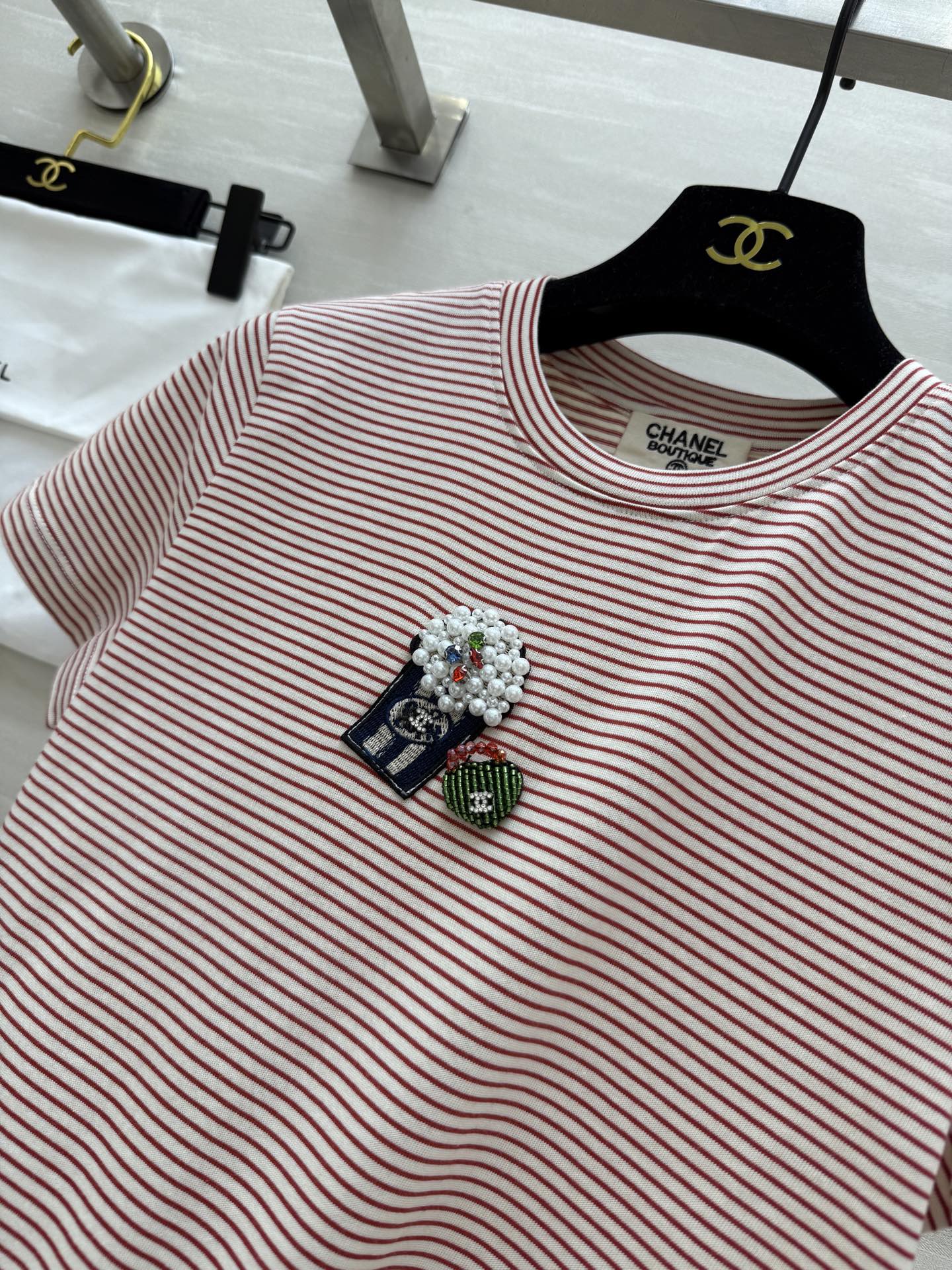 CC Beaded T-shirt Pink White Cotton