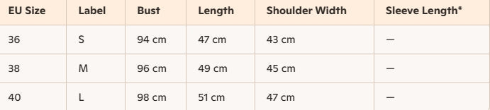 - For more information, please see the size guide below