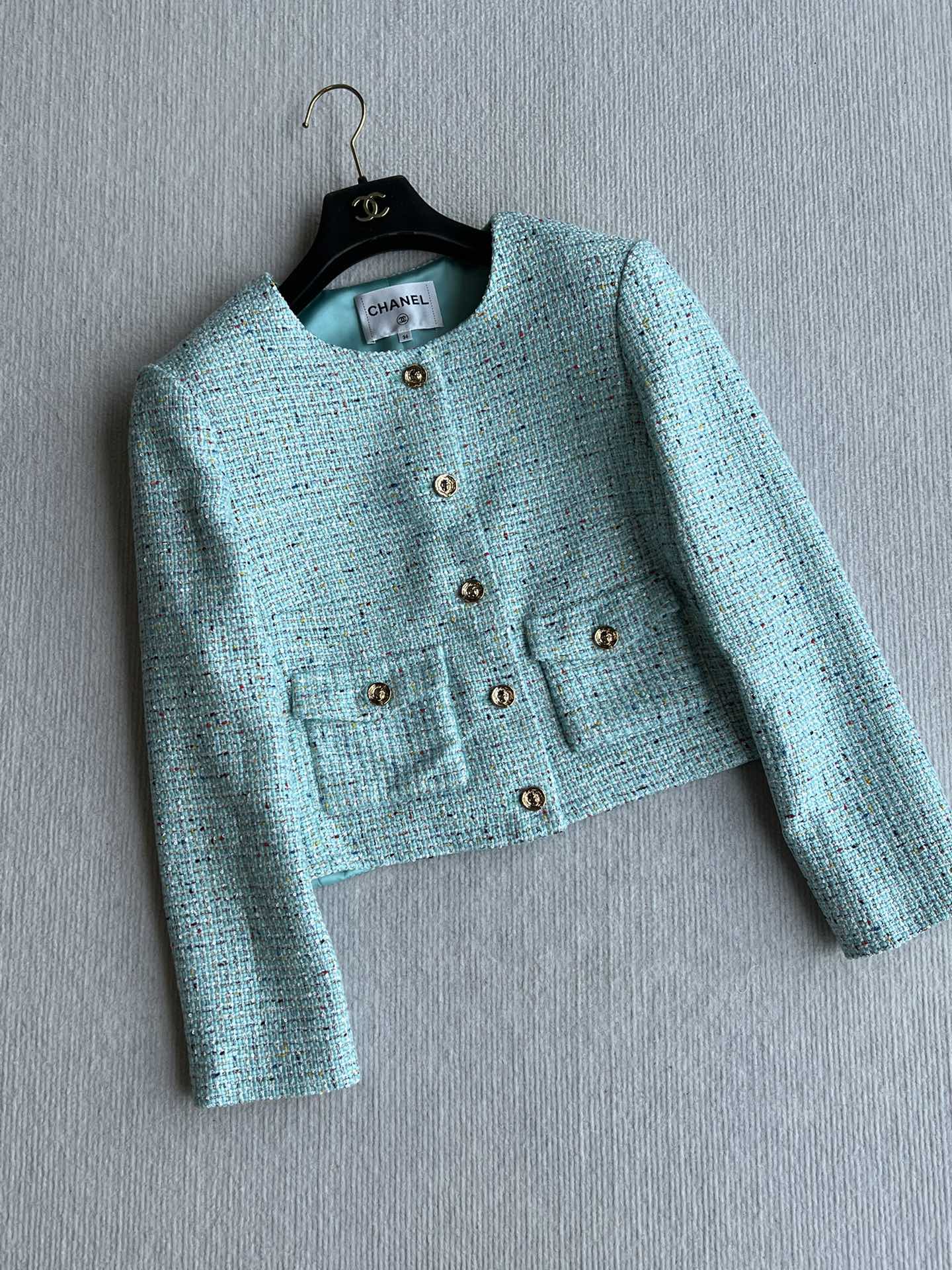 CC 25 Coat Blue-Green Round-Neck Wool Acrylic