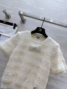 CC Short Sleeve Knitted T-shirt Ivory Imported Fabric