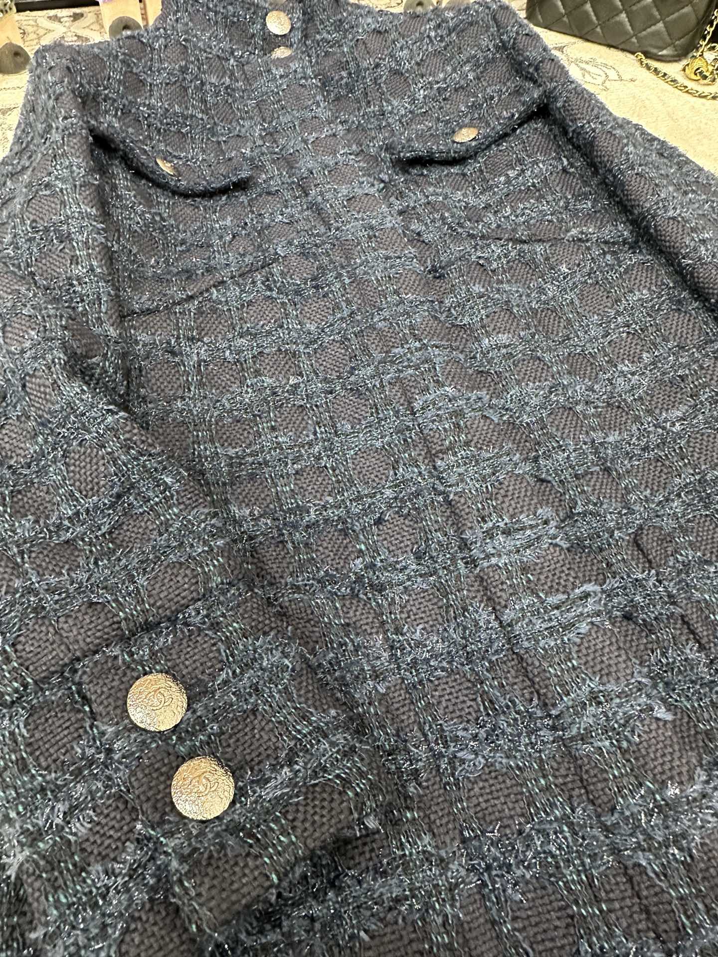 CC Tweed Dress Black Blue Acrylique Laine Wool 251956