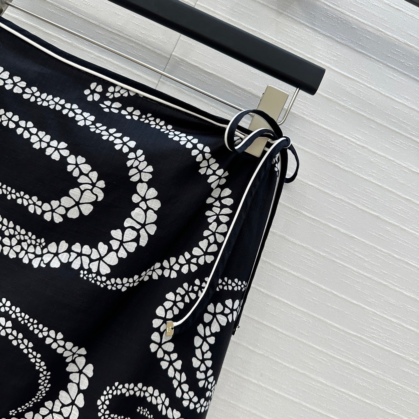 CC 25 Wave Pattern Long Skirt Black Silk Cotton