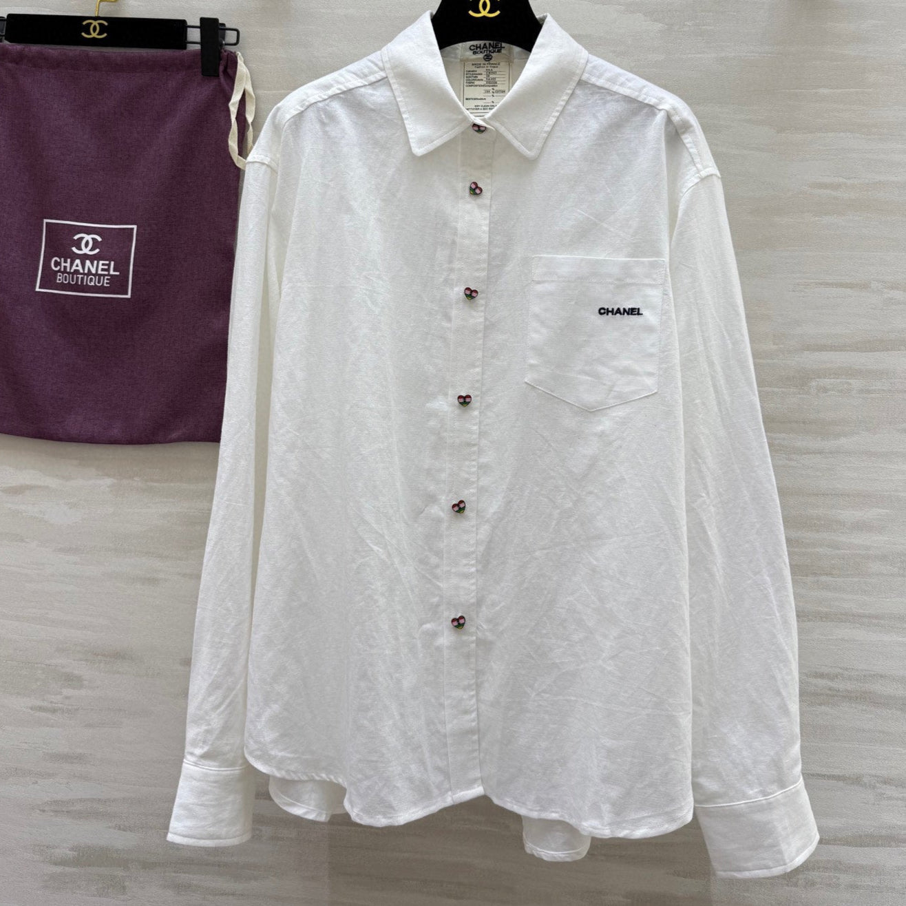 CC 25 Three-dimensional Floral Bow Shirt White Statin Fabric