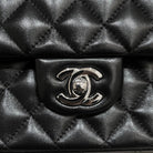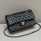 FLAP BAG 25CM SILVER HARDWARE BLACK LAMBSKIN