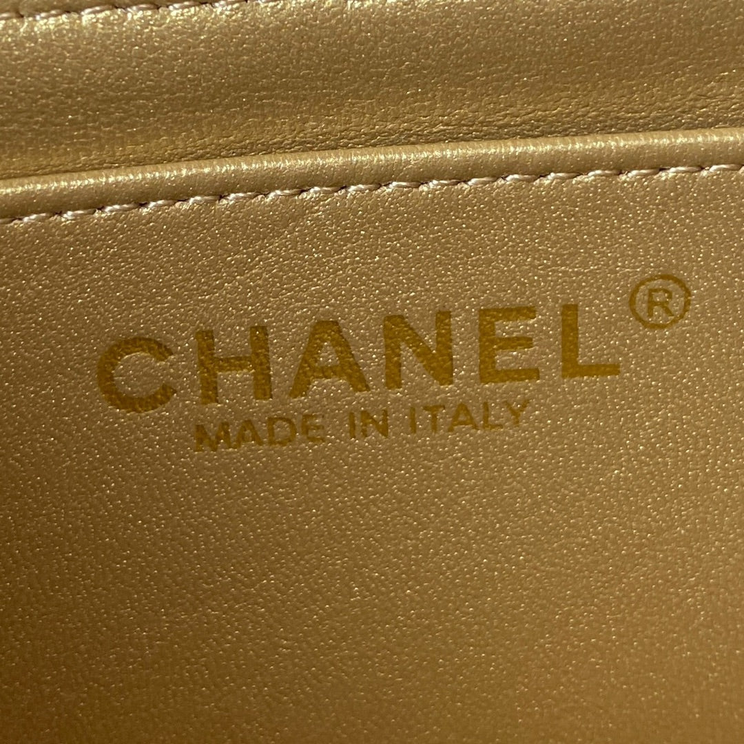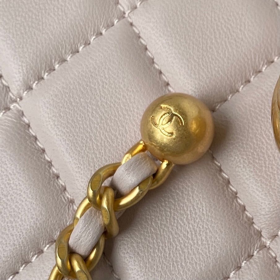 CC 24K Coco Hanle Nano 18cm Beige Grained Calfskin Gold Hardware