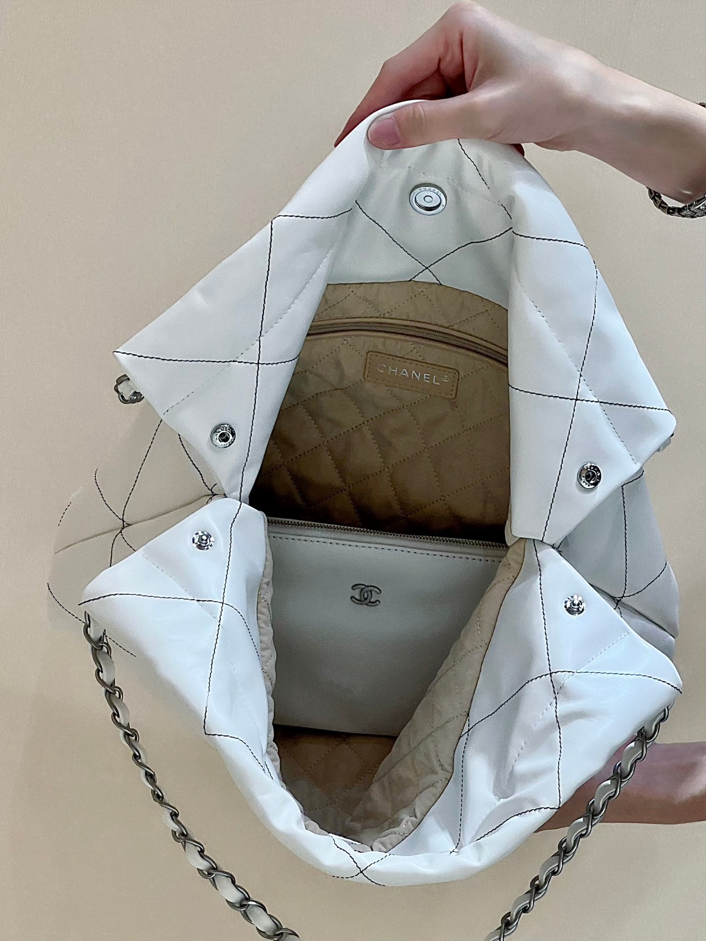 cc22 hobo bag pink white lambskin silver hardware
