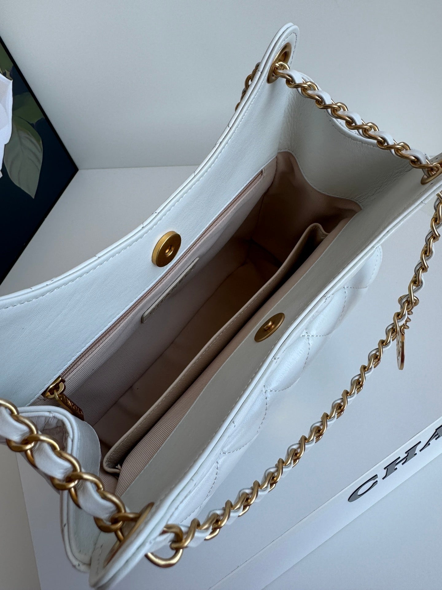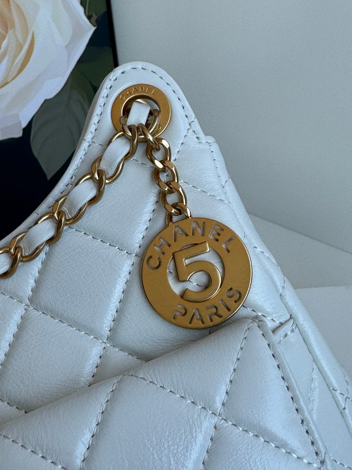 24p cc hobo bag 20cm white lambskin gold hardware