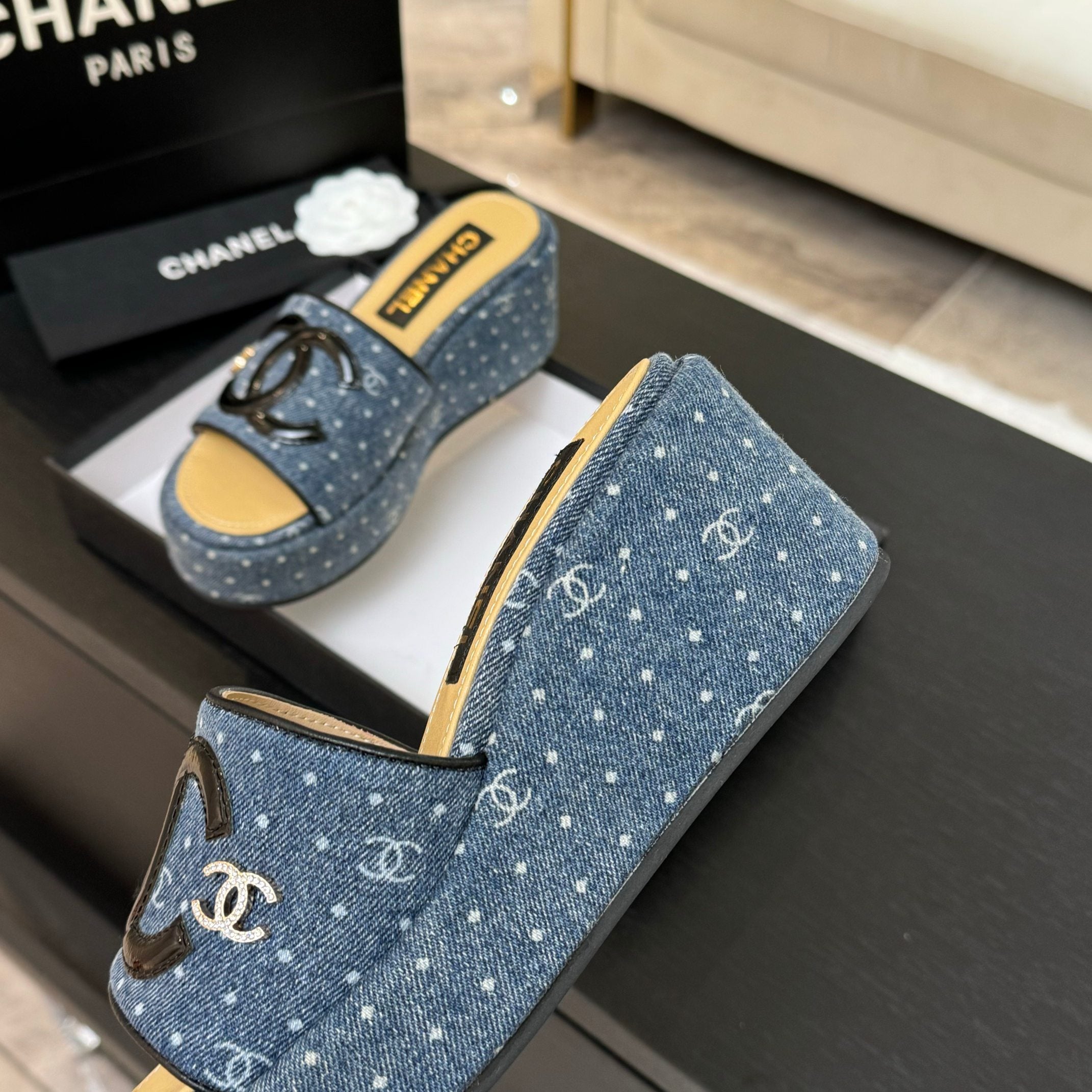 CC 25C Platform Slide Sandals Navy Blue Fabric 213158