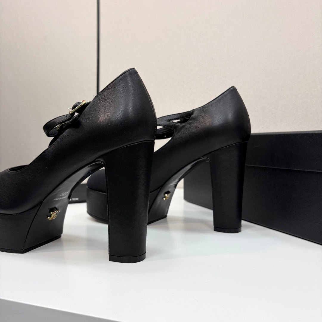 CC 25S Mary Jane Platform 11cm Black Calfskin Grosgrain