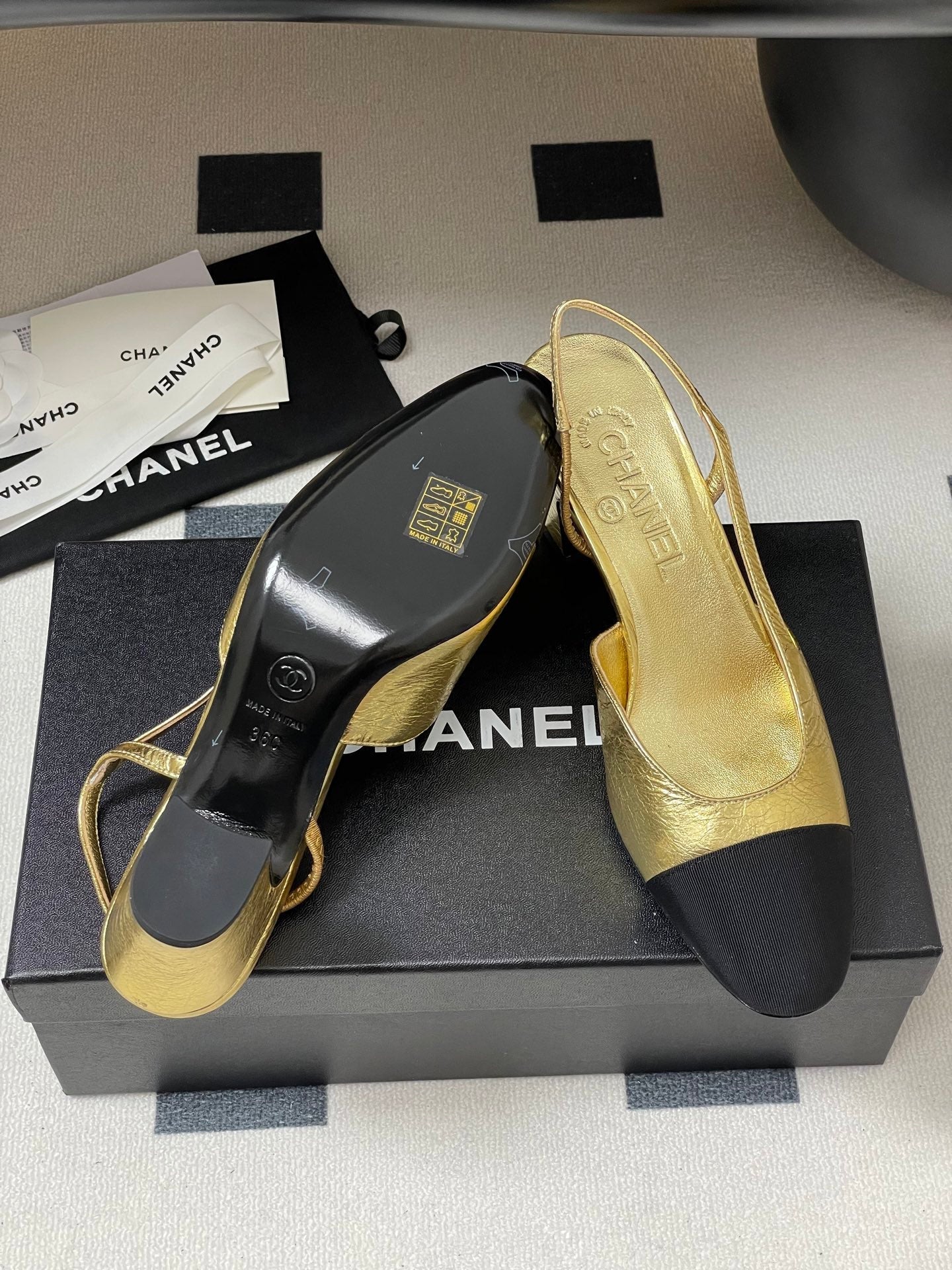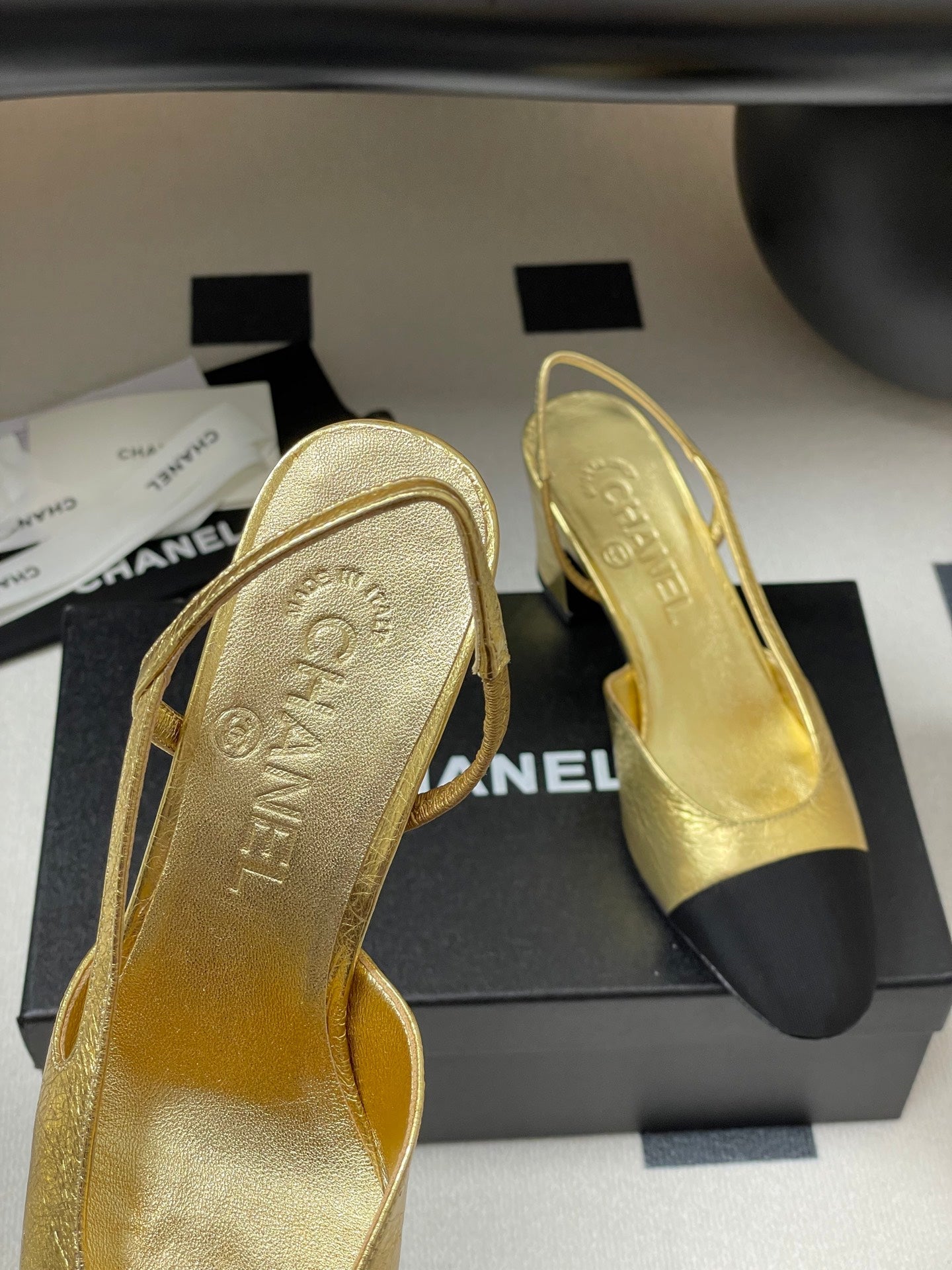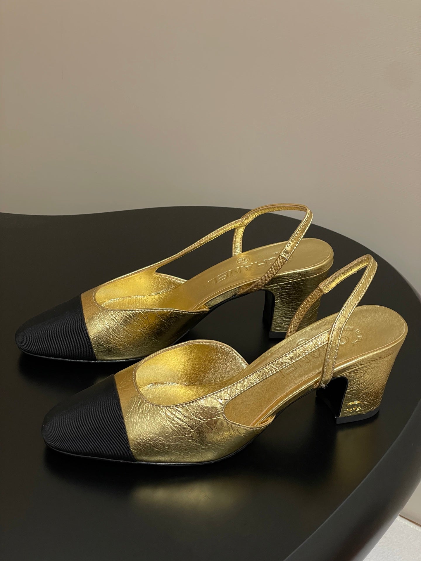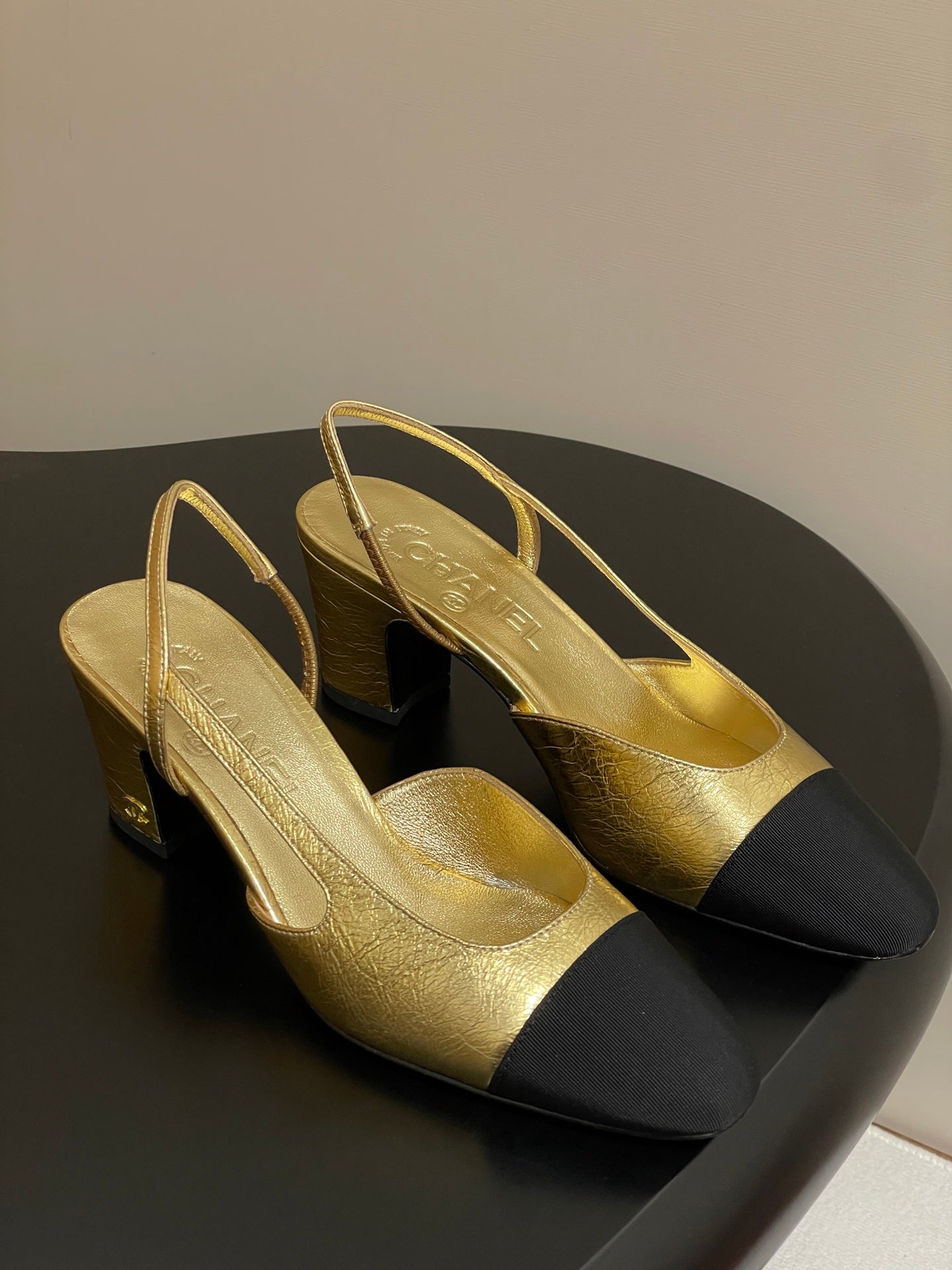 Chanel 2025 Slingback 65mm Gold Metalic Lambskin