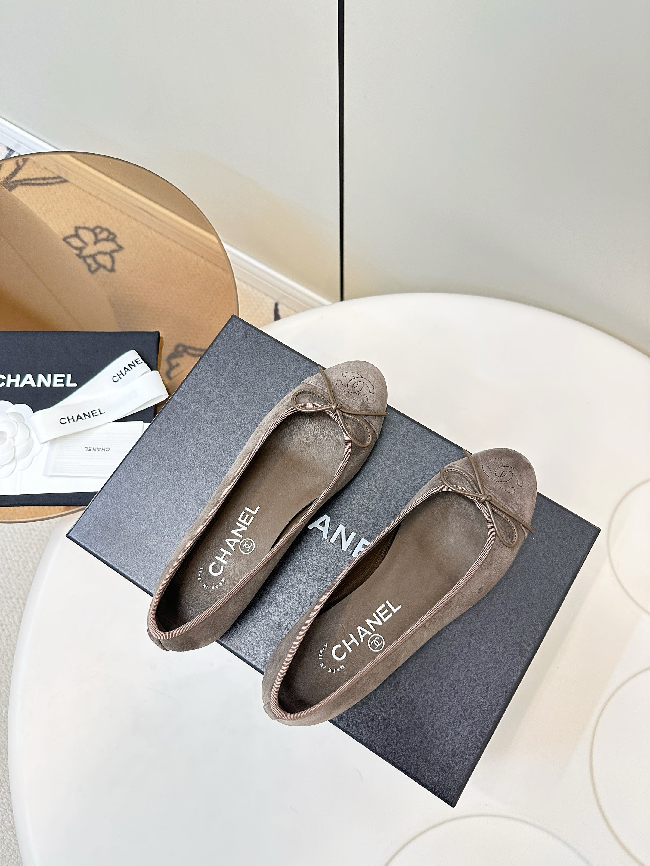 Chanel 25 Ballet Flat Grey-taupe Suede 469253