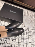 Chanel 25A Winter New Low Boots Black Beige Cowhide 393515