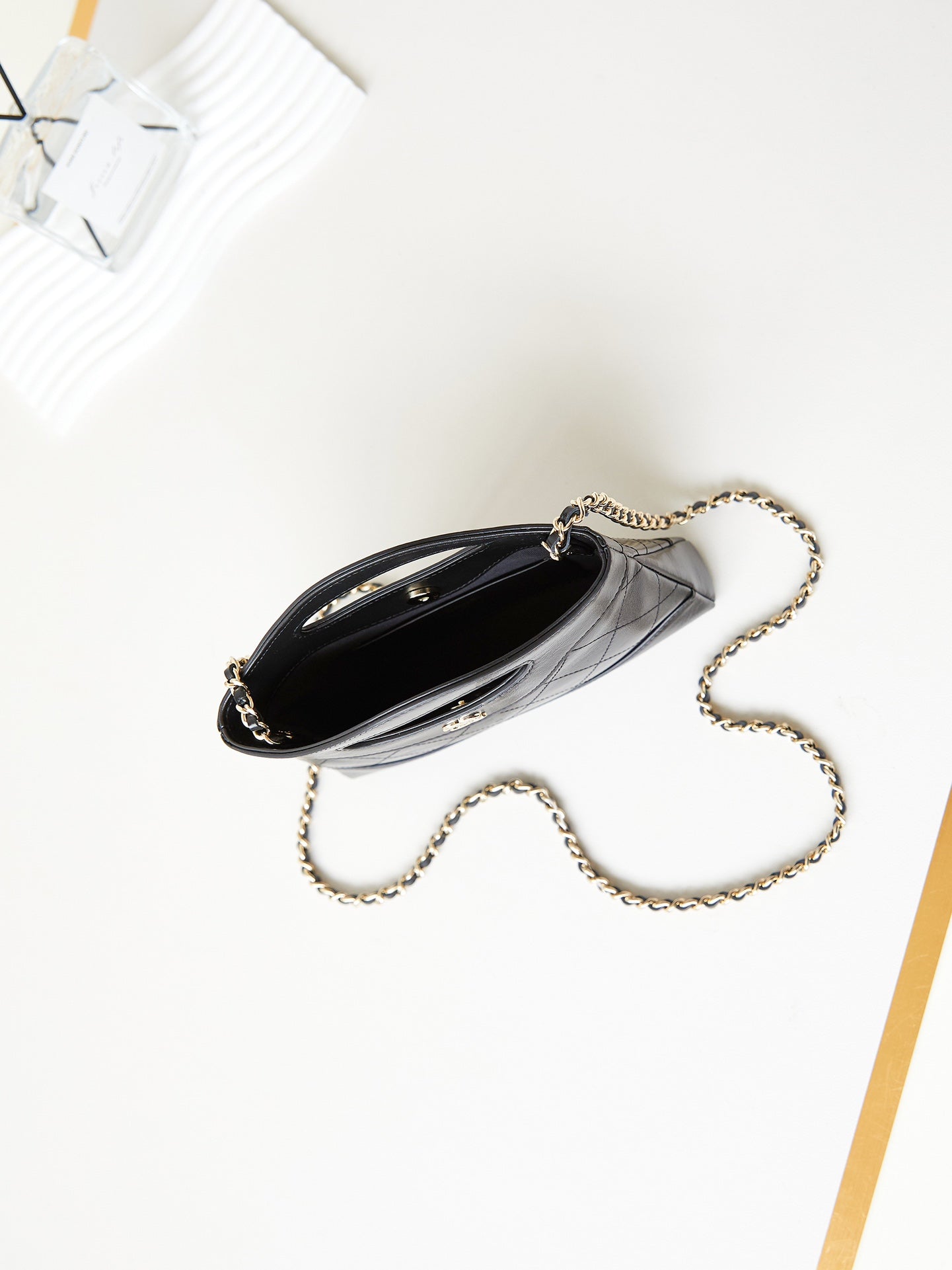 cc 24s31 mini shopping bag 22cm black lambskin gold hardware