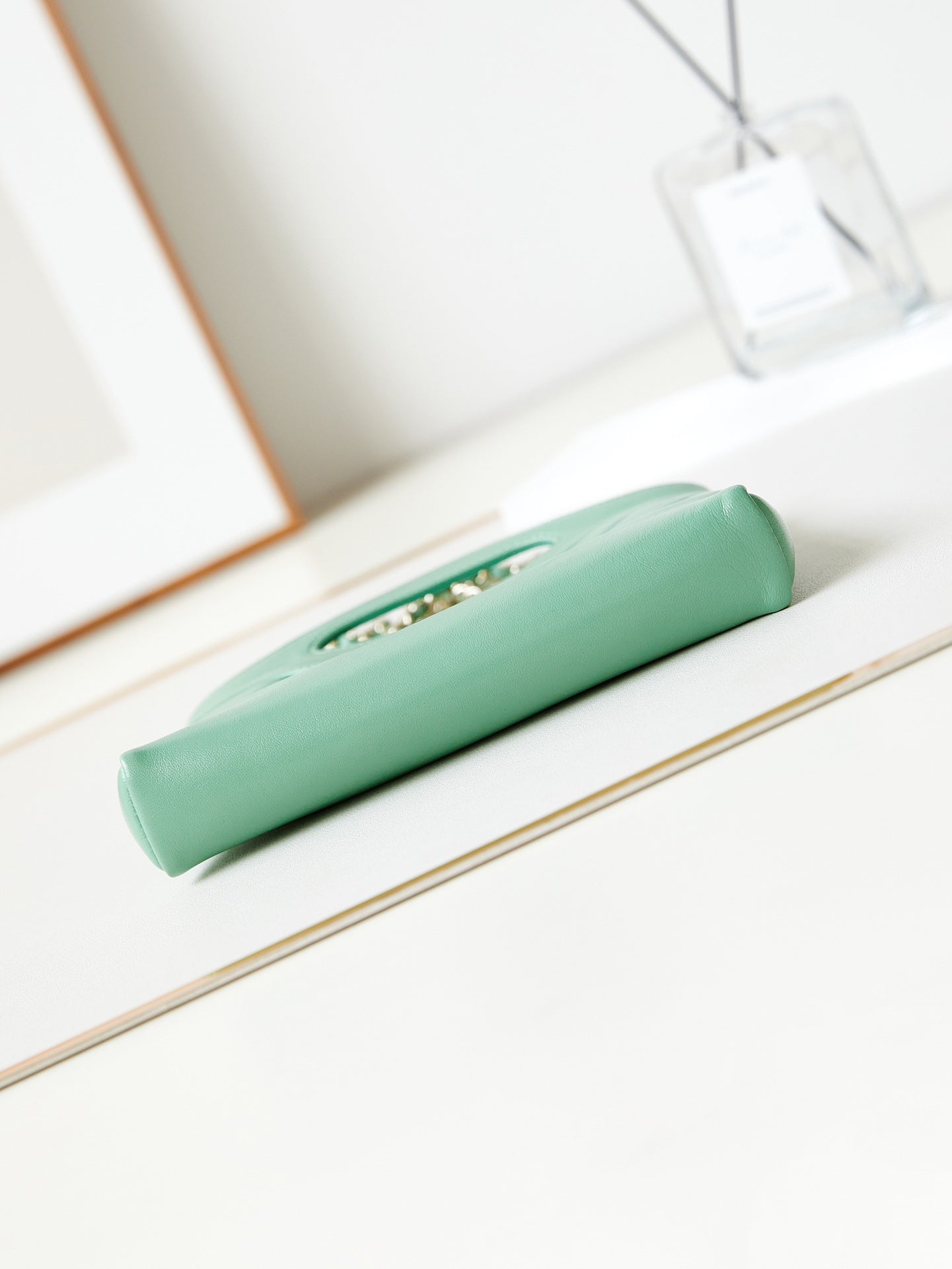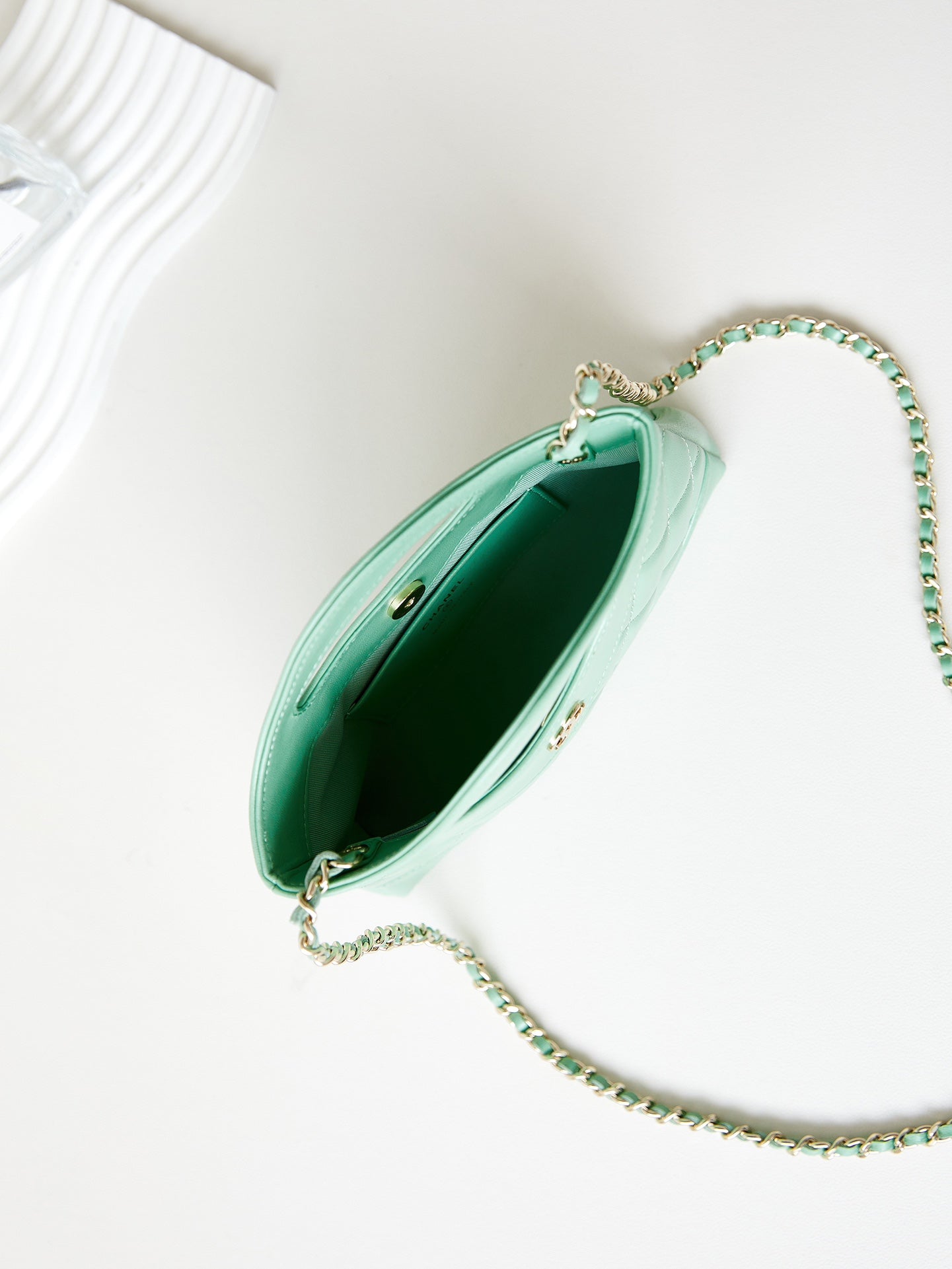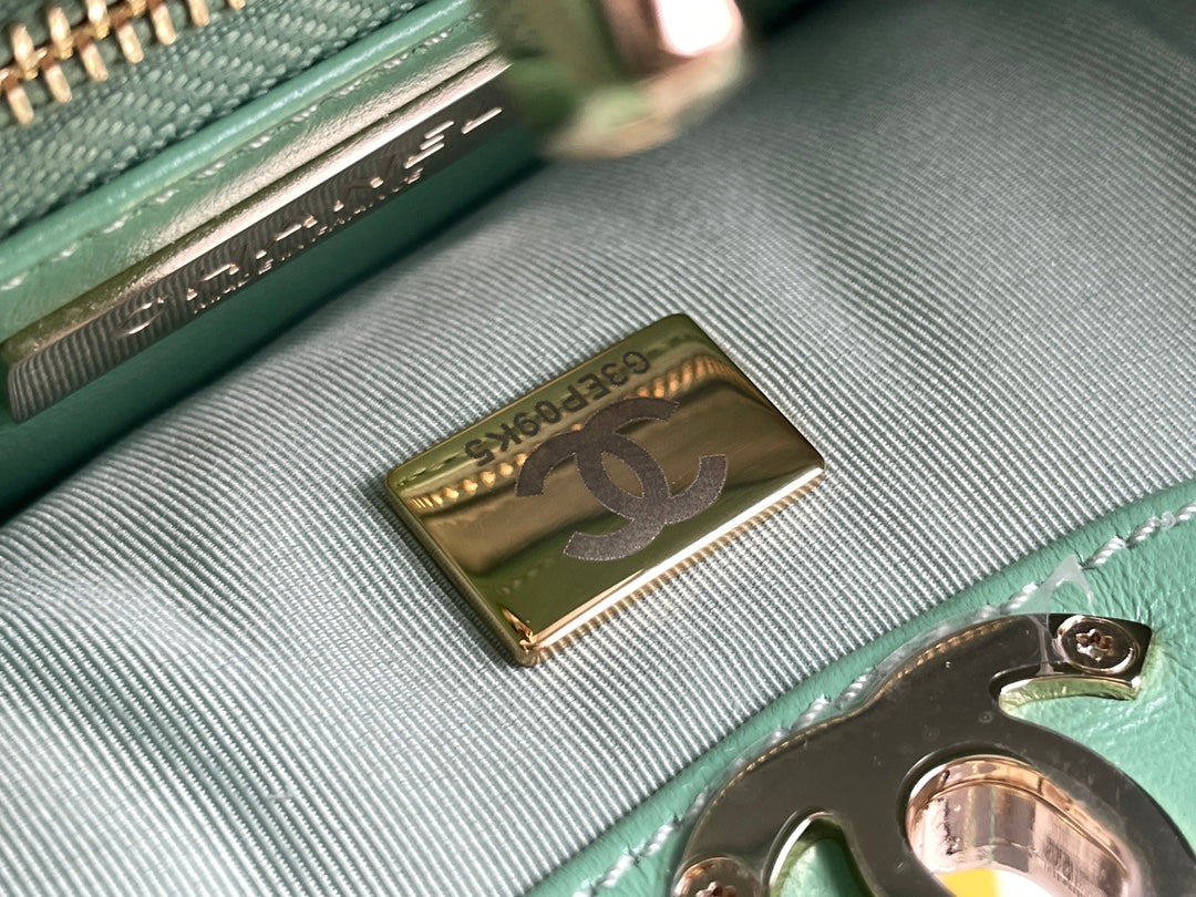 cc 24s31 nano shopping bag 17.5cm light green lambskin gold hardware