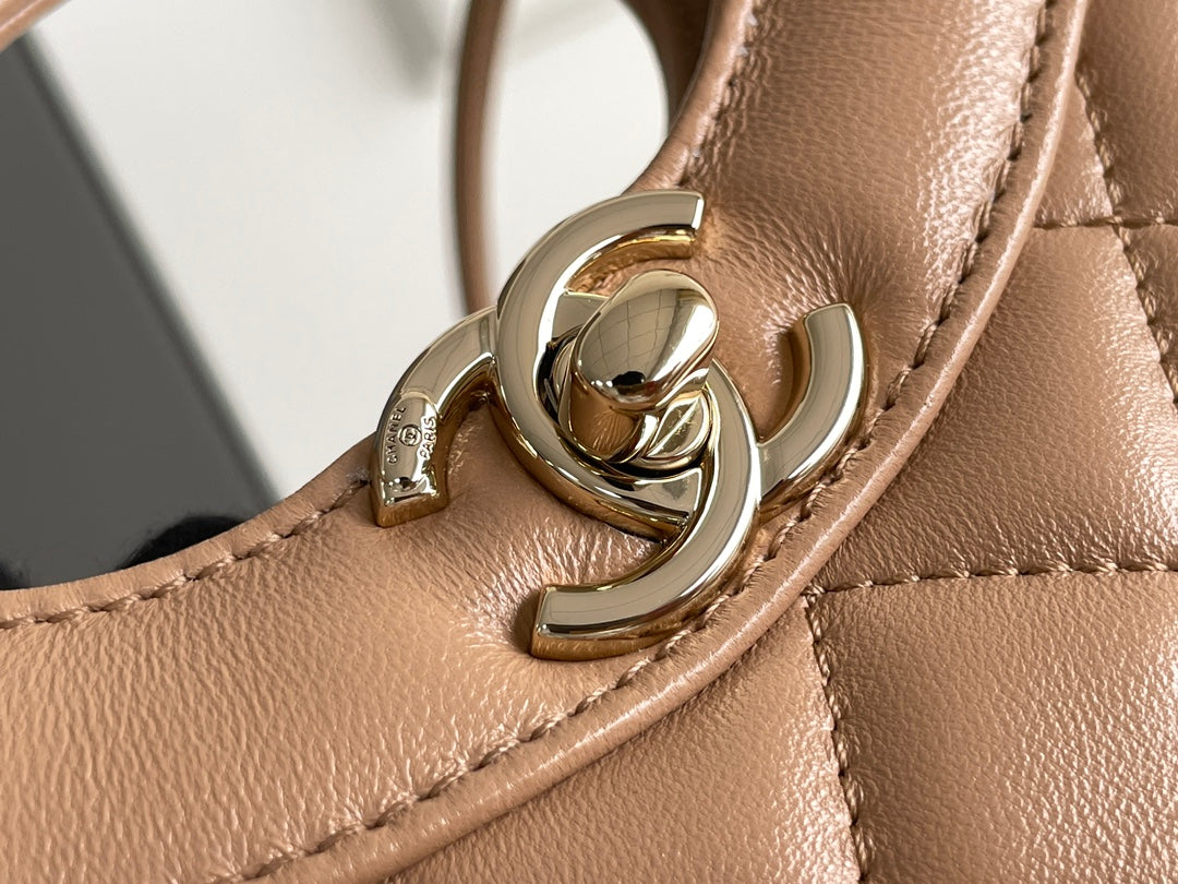 cc 24s31 shopping bag 22cm brown lambskin gold hardware