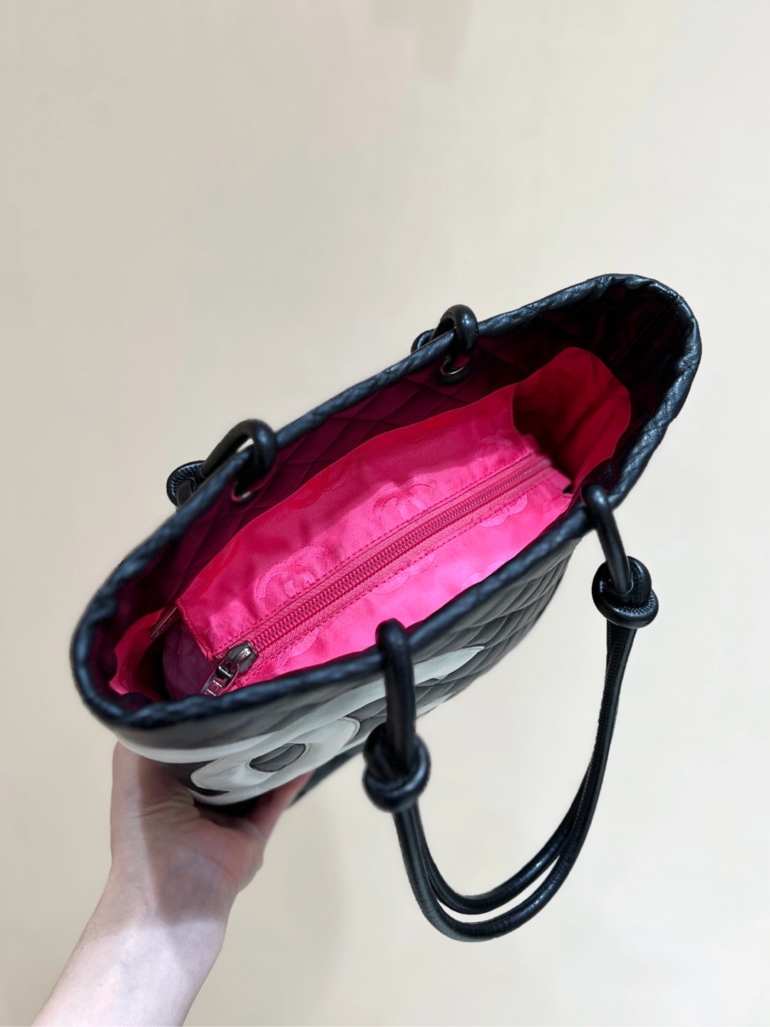 CC Cambon Tote 24cm Black White Quilted Calfsin