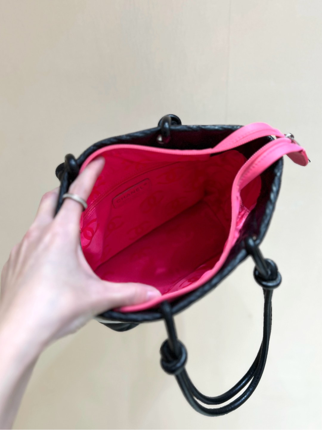 CC Braided Shopping Bag Double C logo Beige Pink Raffia