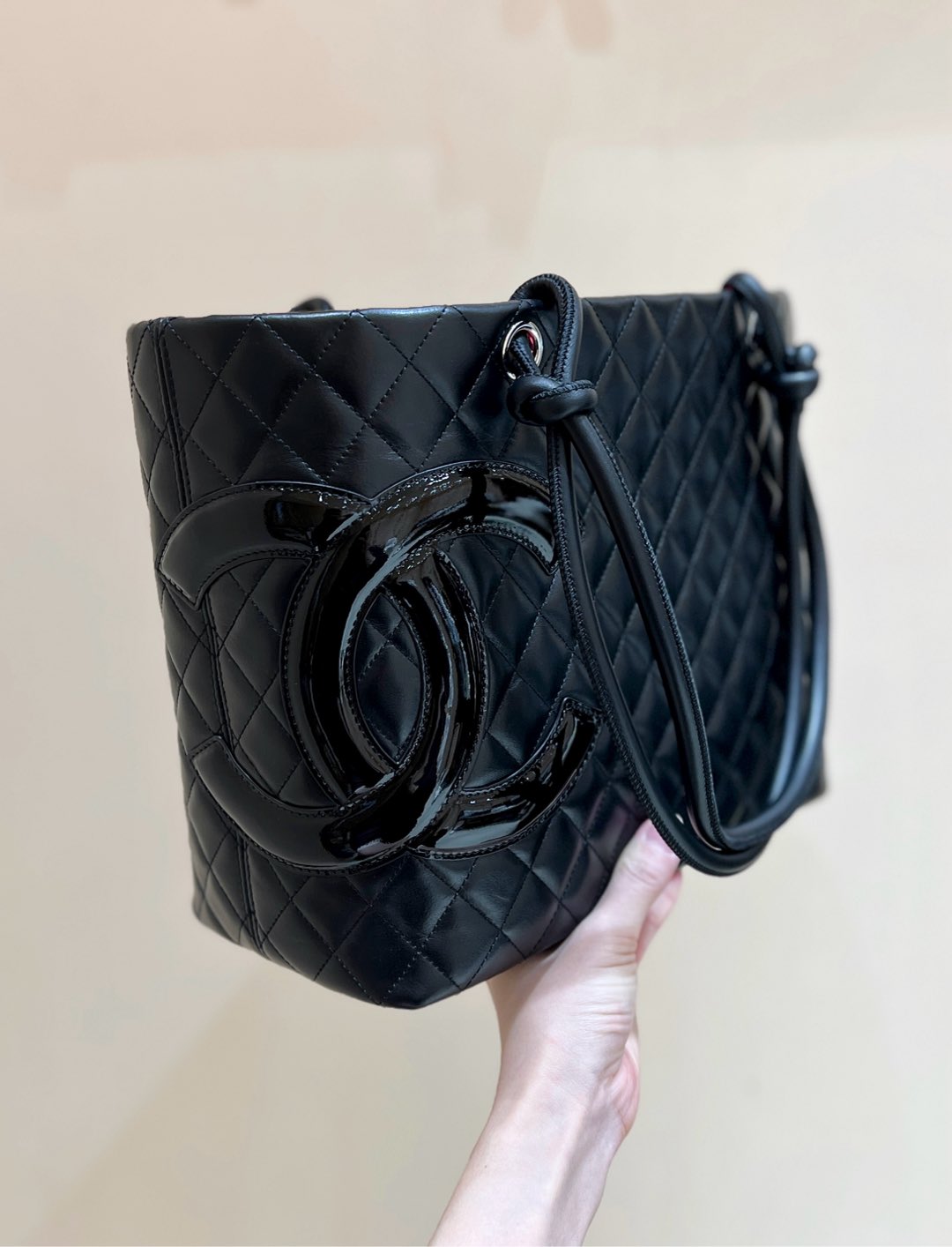 CC Cambon Tote 30cm Black Quilted Calfsin