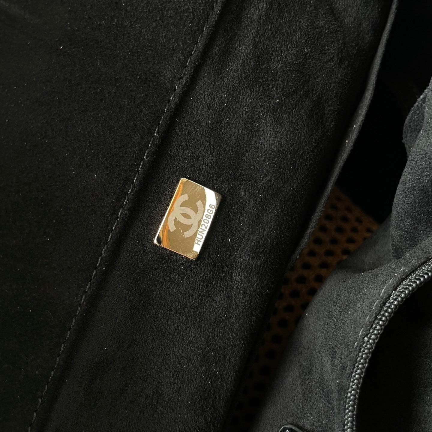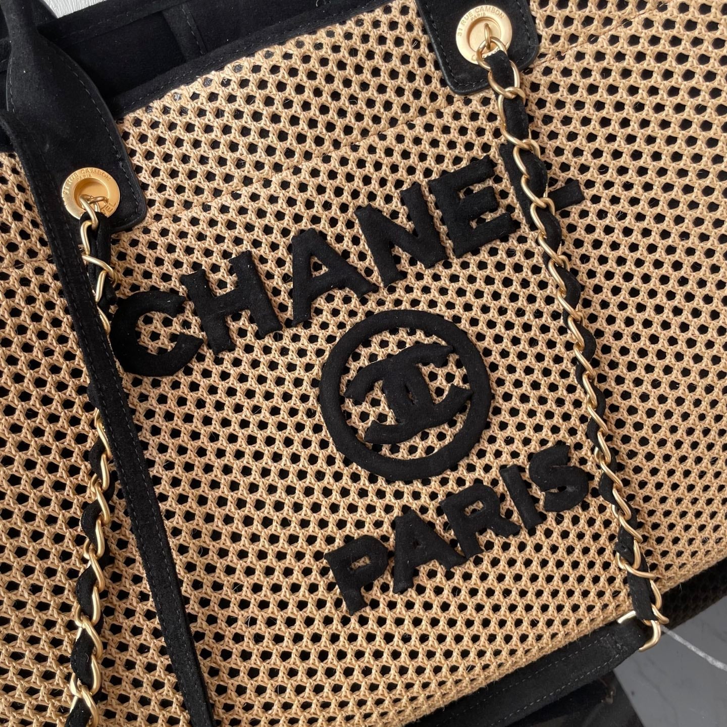CC 25 Deauville Tote Bag 38cm Beige Black Crochet Suede