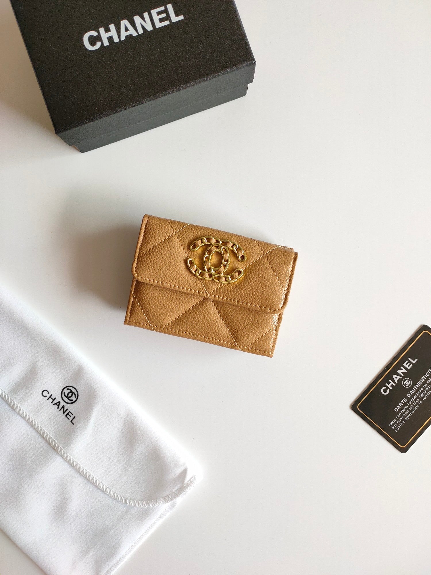 CC TRIFOLD PURSE 12 AMBER GRAINED CALFSKIN GOLD ICON