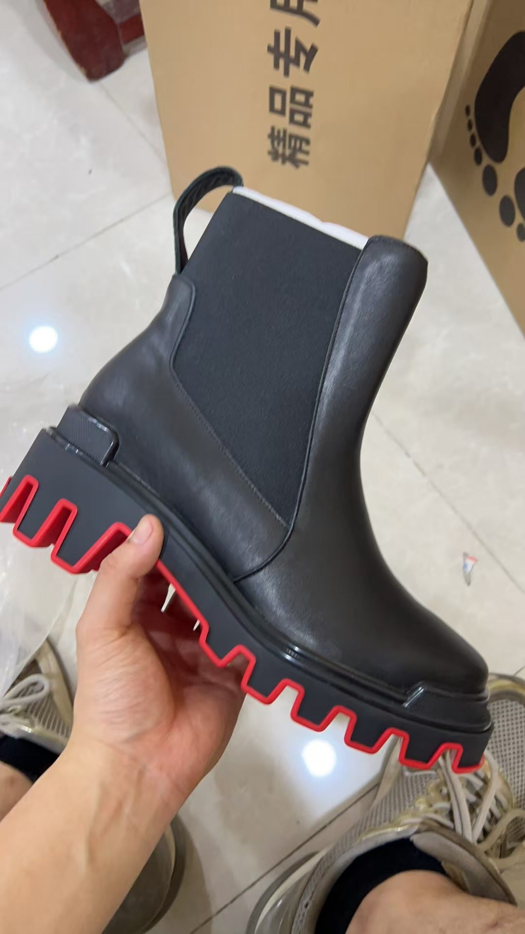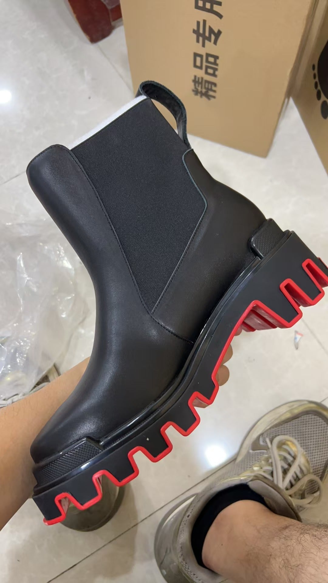 Christian Louboutin Marchacroche Dune Boots Black Red Calfskin