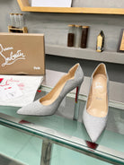 CL Hot Chick Pumps 100mm Glittered Calf Leather Silver